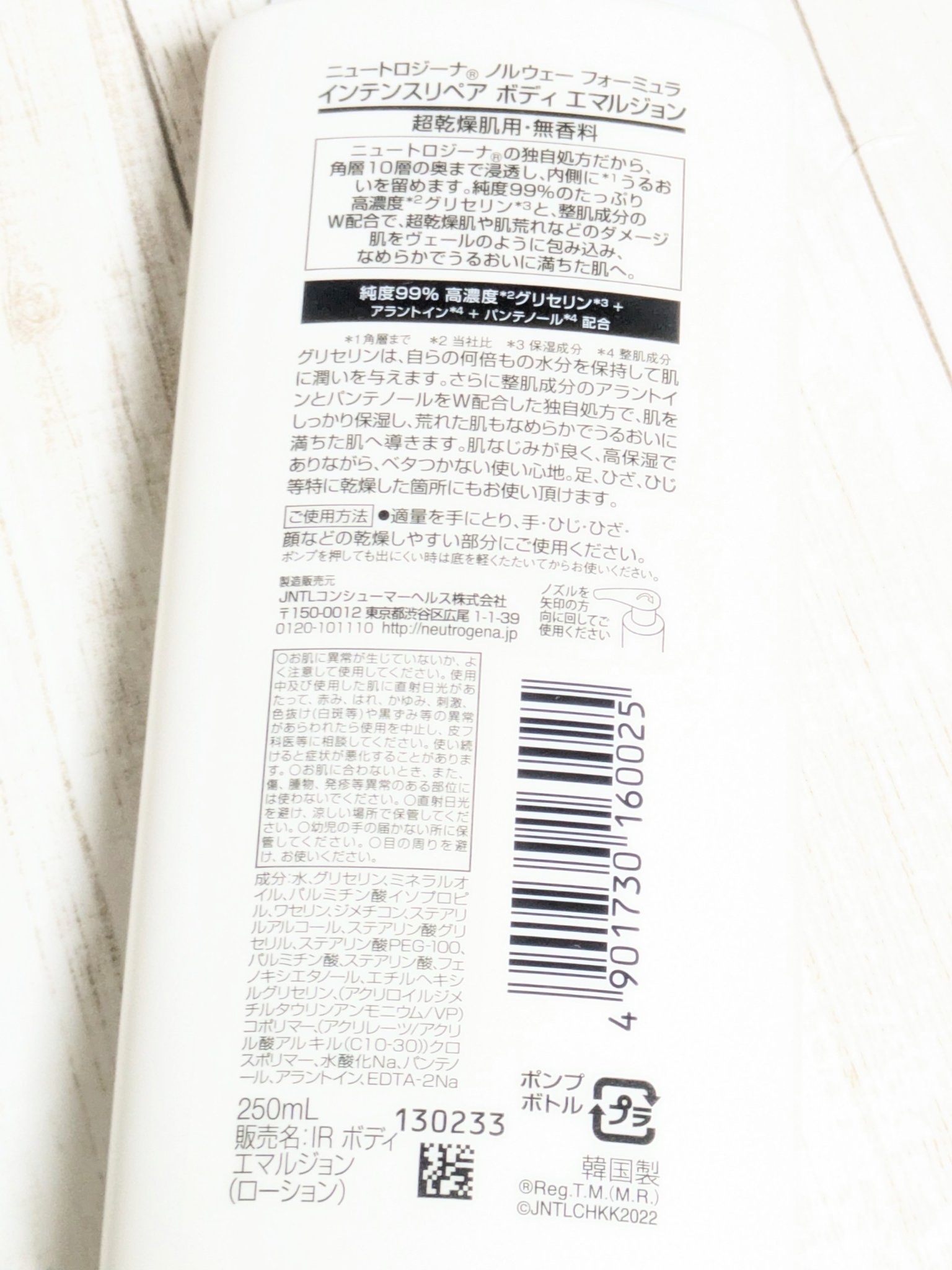 Neutrogena ノルウェー フォーミュラ インテンスリペア CICAボディエマルジョン |