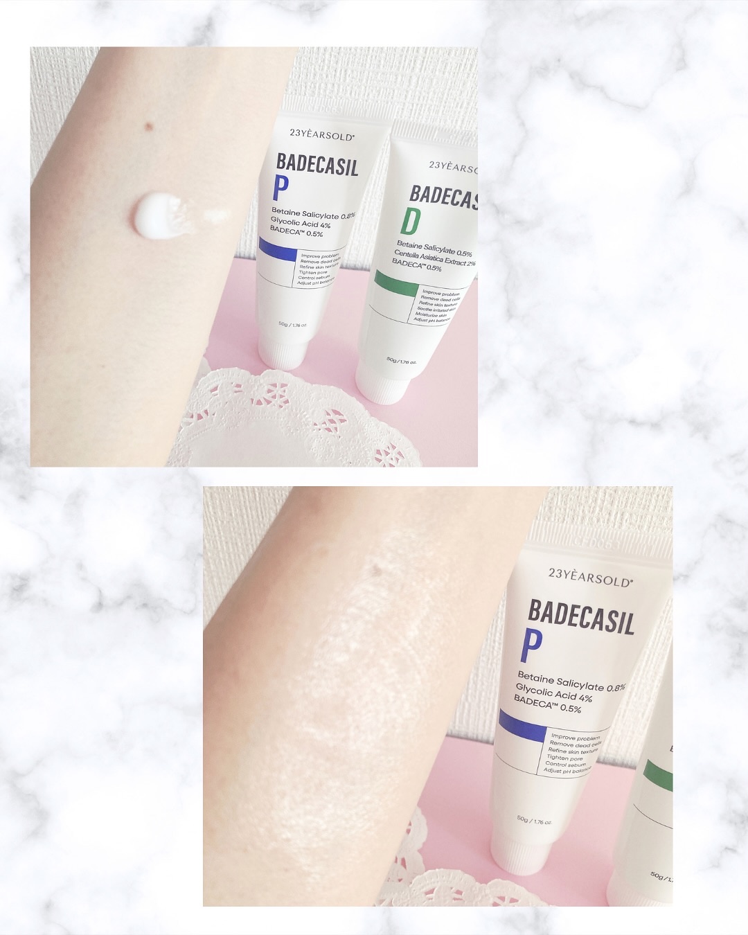 #PR#23yearsoldバデカシルDクリームバデカシルPクリーム朝晩で使い分ける、肌バリアを守りながら角質ケアができるクリーム💚💙サリチル酸(BHA)配合で肌キメを整えてメイクノリもアップ♡トナーパットよりも刺激が少なく保湿もできる✨薬局...