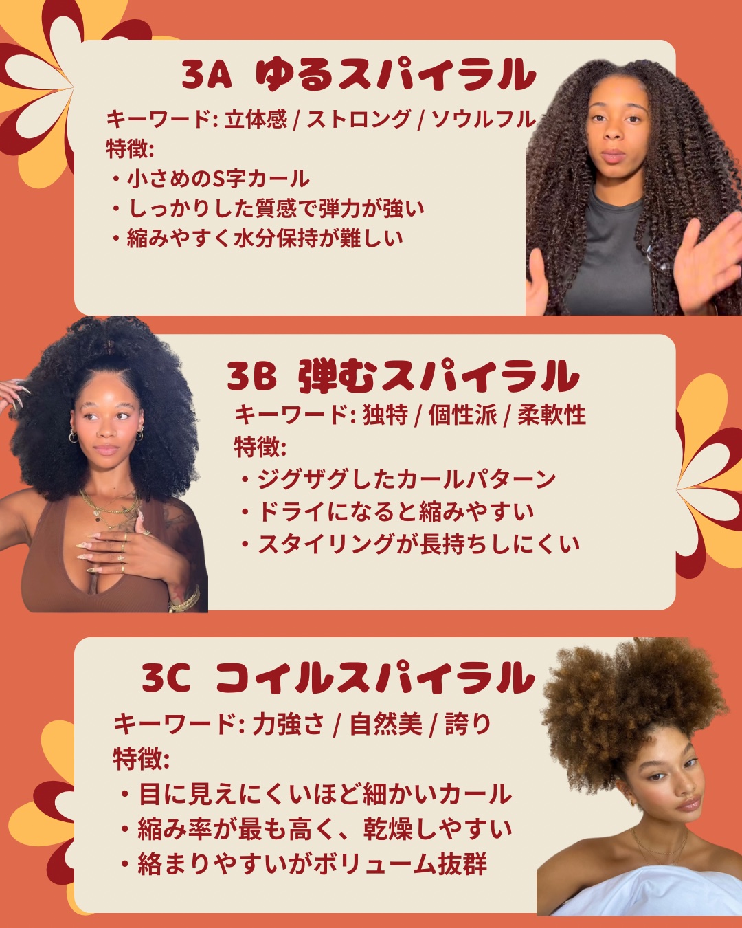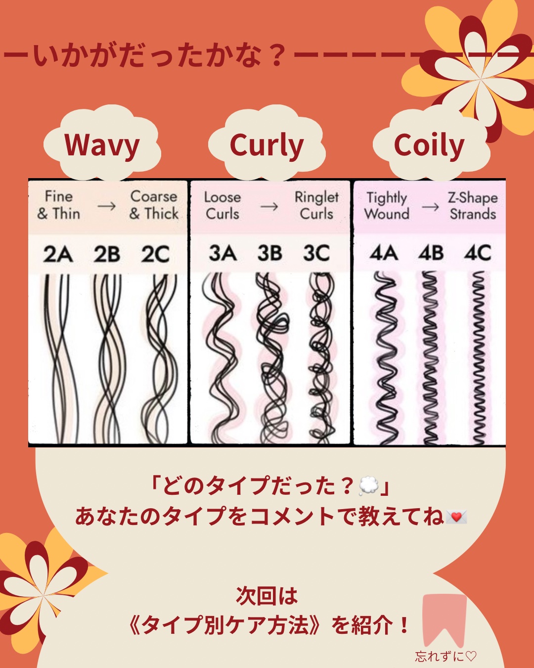 Heycurlyfam🤍✨Didyouknowtherearesomanydifferentcurltypes—from2Ato4C!?みんなカールって一緒に見えて、ぜんぜん違うんだよ〜!私は3Bと3Cがミックスで、日によってカールの形も違う...