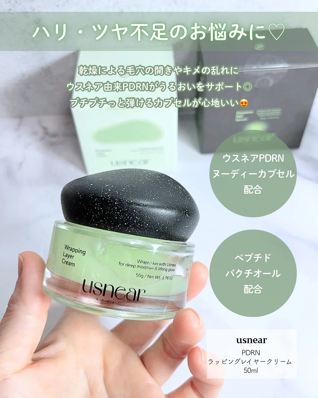 usnear(アスニア)-✧エクソボールセラム-✧ラッピングレイヤークリーム⋆⋆▶エクソボールセラム・ウスネア由来のウスニン酸、B-シトステロール配合・ボール状に凝縮することで重要成分を新鮮に保護・有効成分をエクソソーム化・透明感のある肌を引...