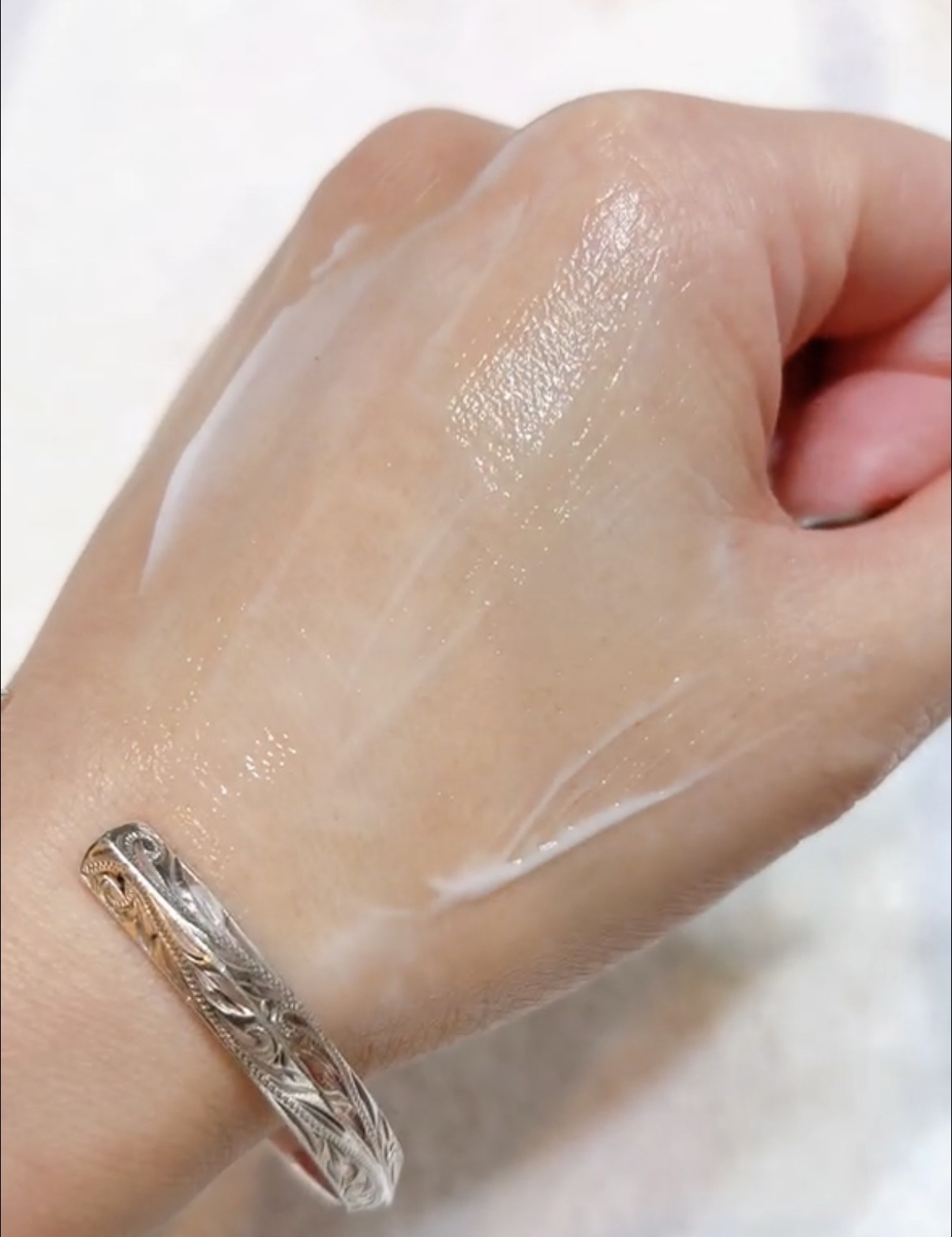 | テクスチャーは思っていたよりサラッとしていて、 のばしやすくべたつかない心地よい使用感。 | 詳細を見る | ||