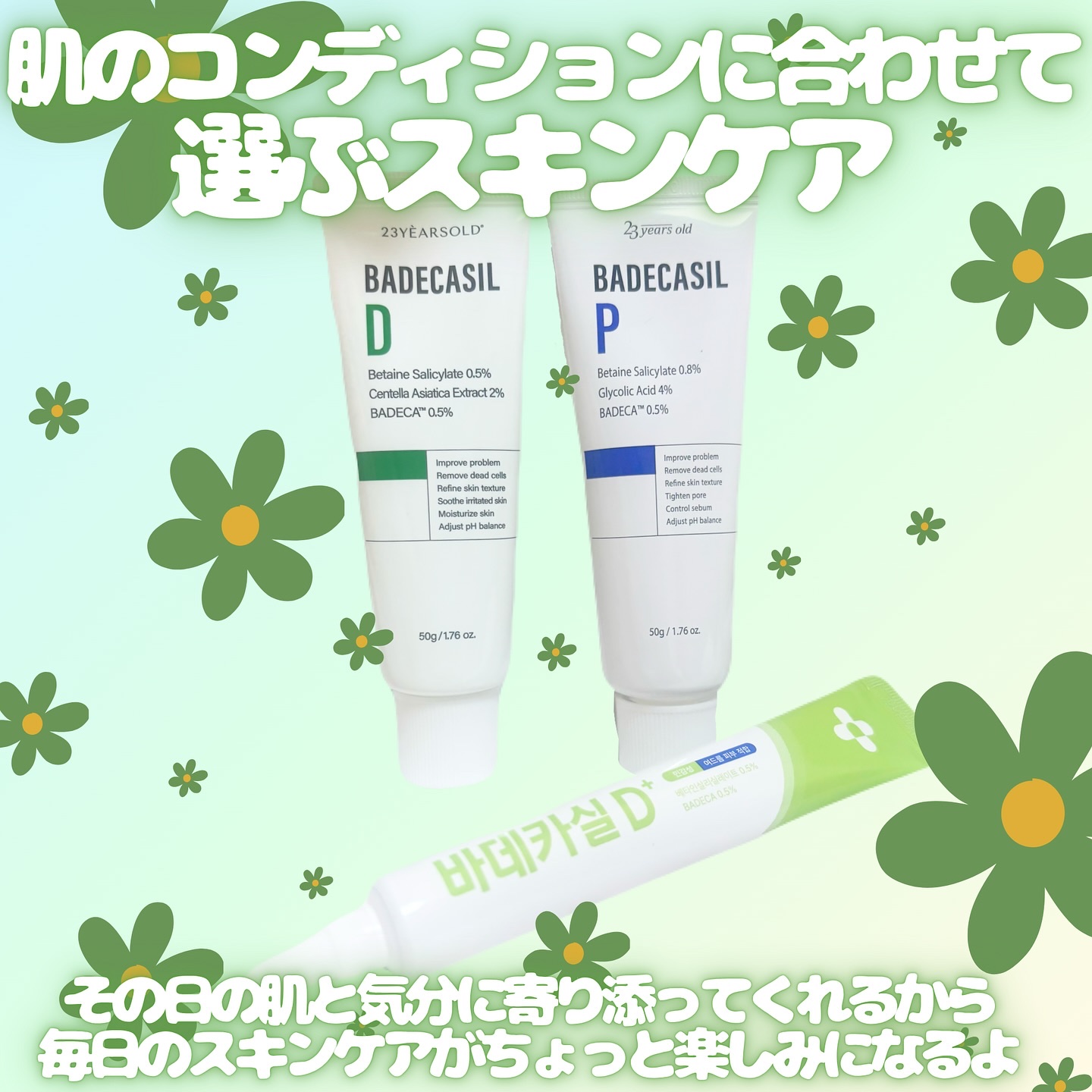 ♡PR23yearsold@23yearsold.jpバデカシルクリームP/D23yearsoldの人気クリーム、バデカシルシリーズをお試し🫶🏻❕💚朝はデイリークリーム《D》CICA配合で、乾燥やゆらぎを優しくケア⛅️💙夜は集中角質クリーム《...