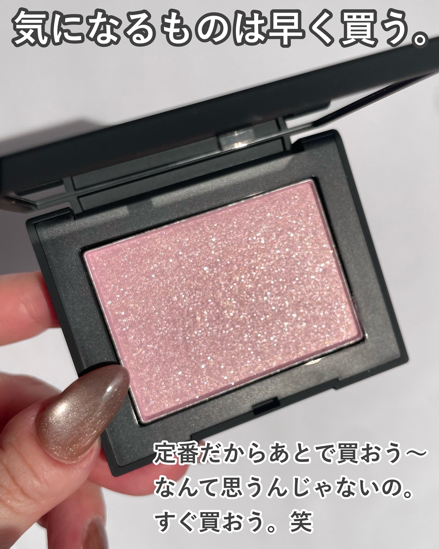 \NARSチーク新色!/NARS大人気チークブラッシュNに7色が仲間入り。2色をご紹介するよ🤲🧡💜パッと顔が明るくなるシマリングピーチカラー🍑【958TEMPTED】とザクっとしたラメ&透明感がプラスされるスパークリングライラック【960PL...