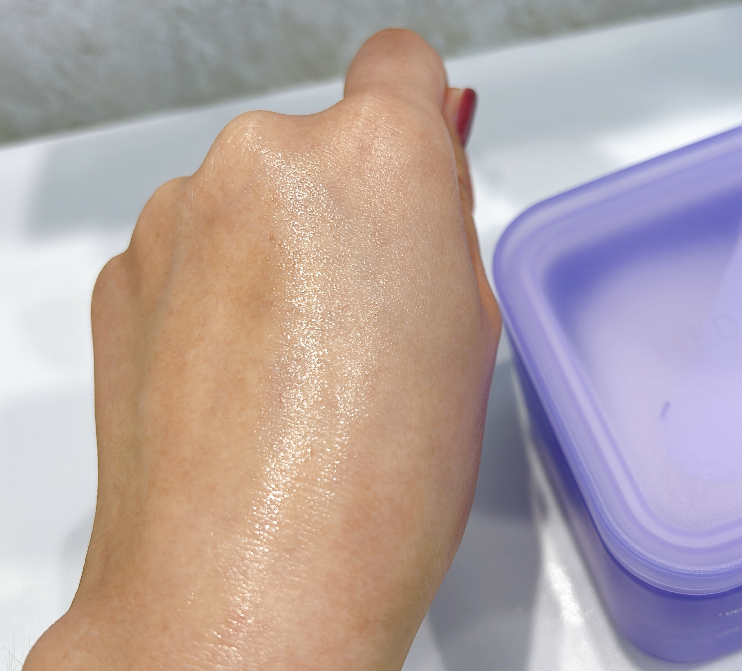 ゴールドの煌めきが繊細で上品可愛くて購入しました! つけると派手なのかな?と思っていたゴールドもつけてみると繊細なラメで上品にツヤが出ます◎ 光に当たるととっても可愛い😍🩷 まだ在庫が残っているみたいなので気になる方は是非チェックしてみてください🫶✨