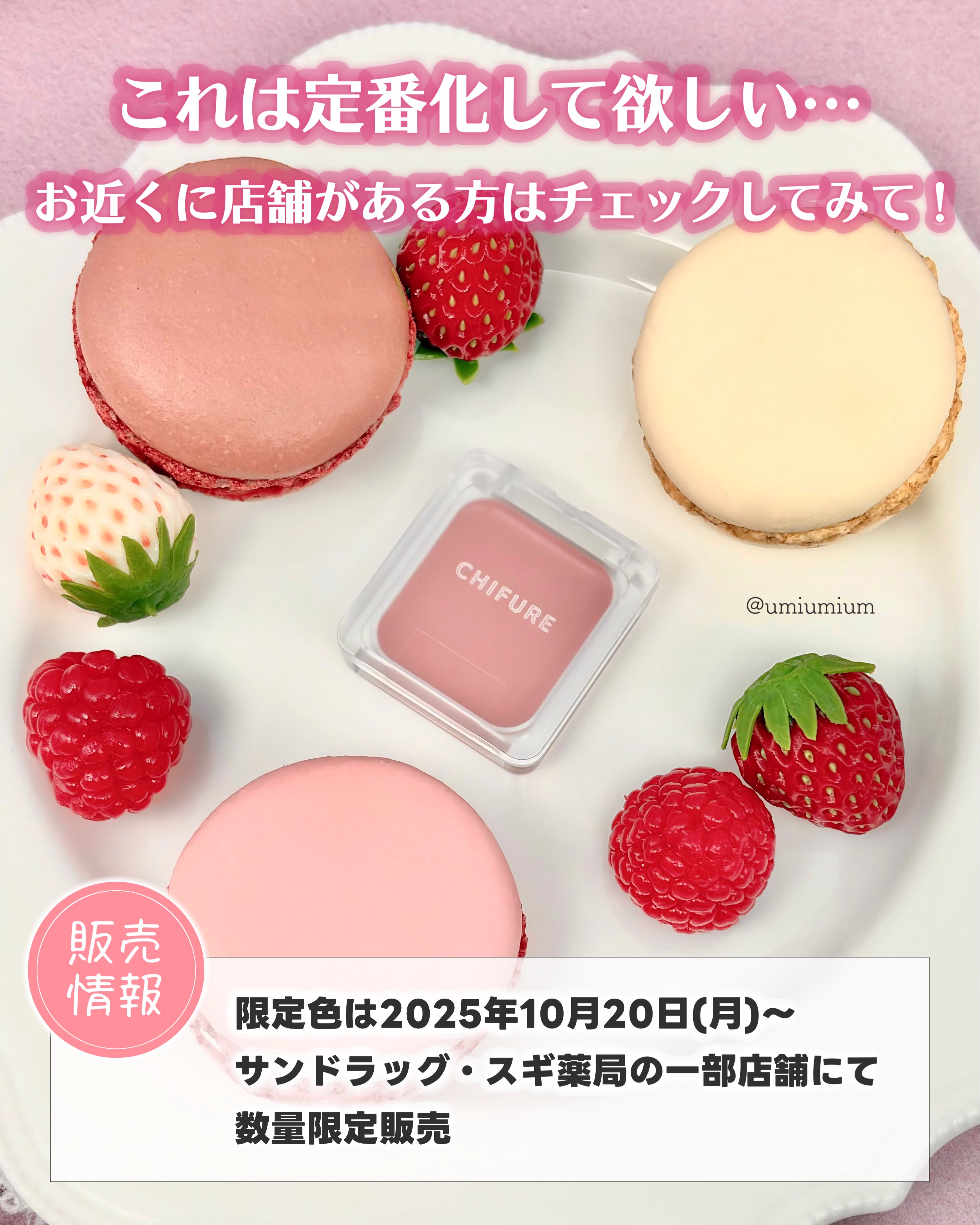 限定新色!ちふれリップ&チークバームPK11ピンク系[限定色]☑︎2025年10月15日〜数量限定発売☑︎取扱はサンドラッグ、スギ薬局の一部店舗ずっと気にはなっていたちふれのリップ&チークバーム。青みピンクの新色が登場したとの事で購入してみま...