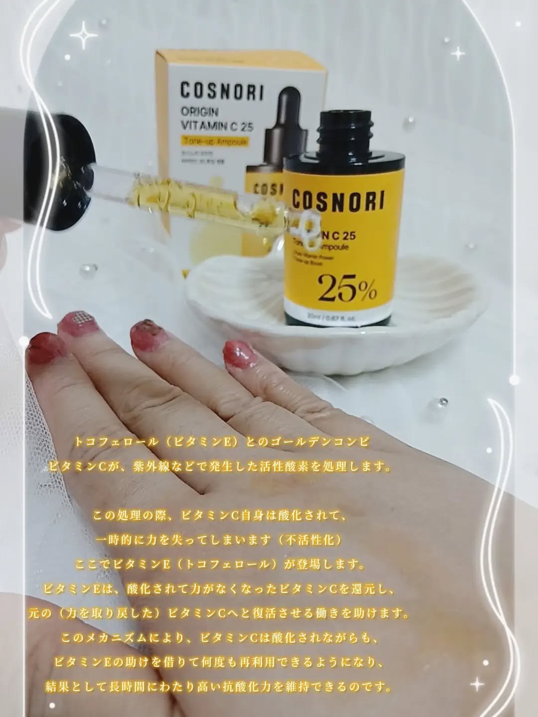 COSNORI様からいただきました✨🏷COSNORIオリジンビタミンCトーンアップアンプル【商品の特徴】✅イギリス産のピュアビタミンC(アスコルビン酸)を25%配合✅ピュアビタミンCの安定性&効果を高めるため、トコフェロール(ビタミンE:保湿...
