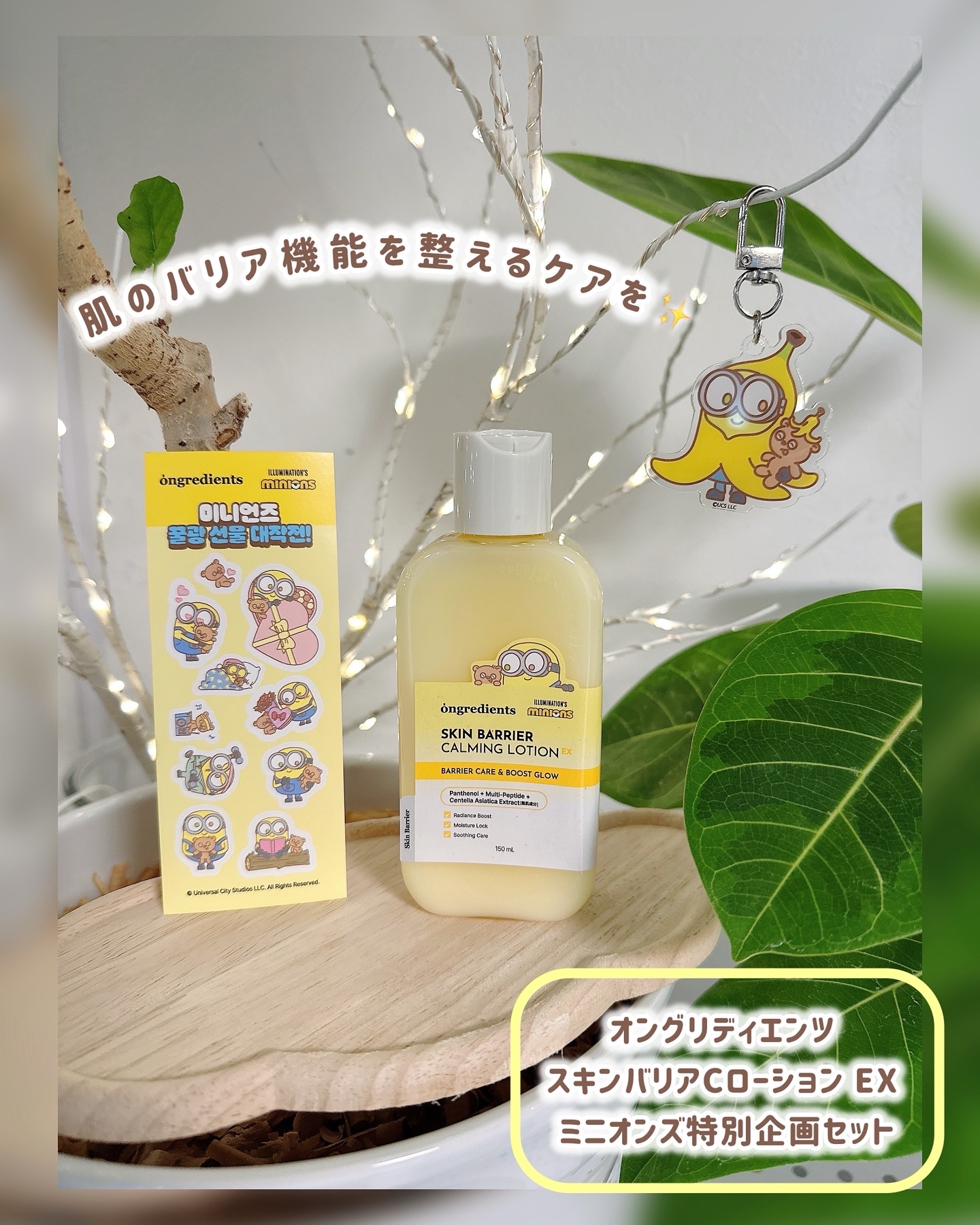 - 「ongredients(オングリディエンツ)」が、ついに日本のオフライン店舗に登場! <2025年8月30日(土)(※1)より全国のプラザ、ドン・キホーテ(※2)にて先行販売を開始> メイクノリが上がるツヤ肌乳液 【主要成分】 ・オリオソームTECA(※3) ツボクサ由来成分(※3)をオリオソーム技術で包み込み、肌に馴染みやすい設計にすることで、外的刺激を受けた肌を落ち着かせます。 ・複合ペプチド(※4)&ヴィーガンコラーゲン(※5) 肌コンディションを整え、内側から輝くようなツヤ肌を演出します。 ・パンテノール(※6) 角質層まで浸透(※7)し、うるおいのある肌印象へと導きます。 【こんな方におすすめ】 ・ツヤ感のあるメイクを好む方 ・水分感のあるツヤ肌を目指したい方 ・外的刺激によりゆらいだ肌を労わりたい方 (※1)店頭開始日となり、購入可能日は各店舗により異なります。 (※2)一部店舗を除きます。 (※3)アシアチコシド,アシアチン酸,マデカシン酸(整肌成分) (※4)ヘキサペプチド-11,オリゴペプチド-1,オリゴペプチド-2,オリゴペプチド-3,アセチルヘキサペプチド-8,カラスムギペプチド,トリペプチド-1銅,パルミトイルヘキサペプチド-12,パルミトイルペンタペプチド-4,パルミトイルテトラペプチド-7,パルミトイルトリペプチド-1,トリペプチド-1 (※5)ハイビスカスコラーゲンから抽出した加水分解コラーゲン(整肌成分) (※6)保湿成分 (※7)角質層まで