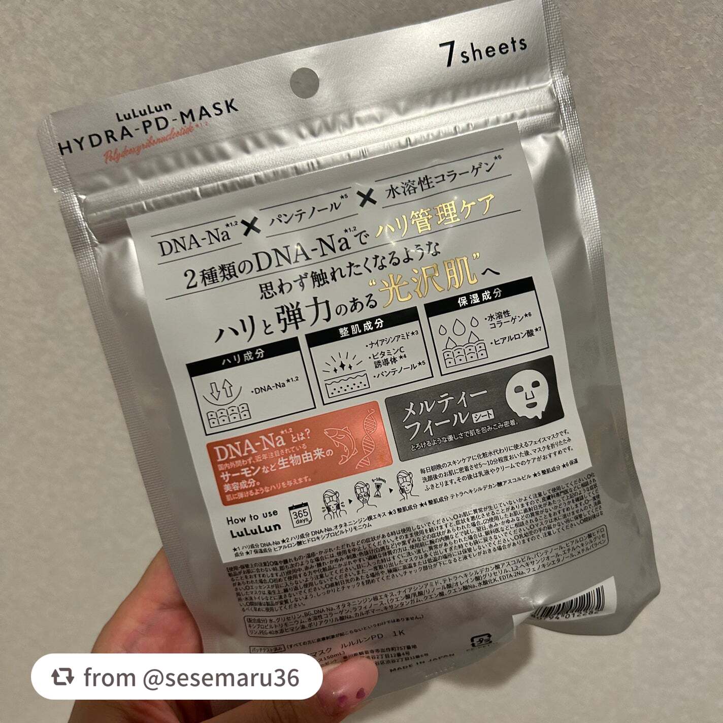 ルルルンルルルンハイドラPDマスク7枚入ルルルンのマスク大好きで発売する前から絶対買う!って決めてました🖤今回発売したこちらのマスクは分子サイズの異なる2種類のPDRN*¹*²植物由来のPDRN*¹とサーモン由来のPDRN*²を配合でお肌のハ...