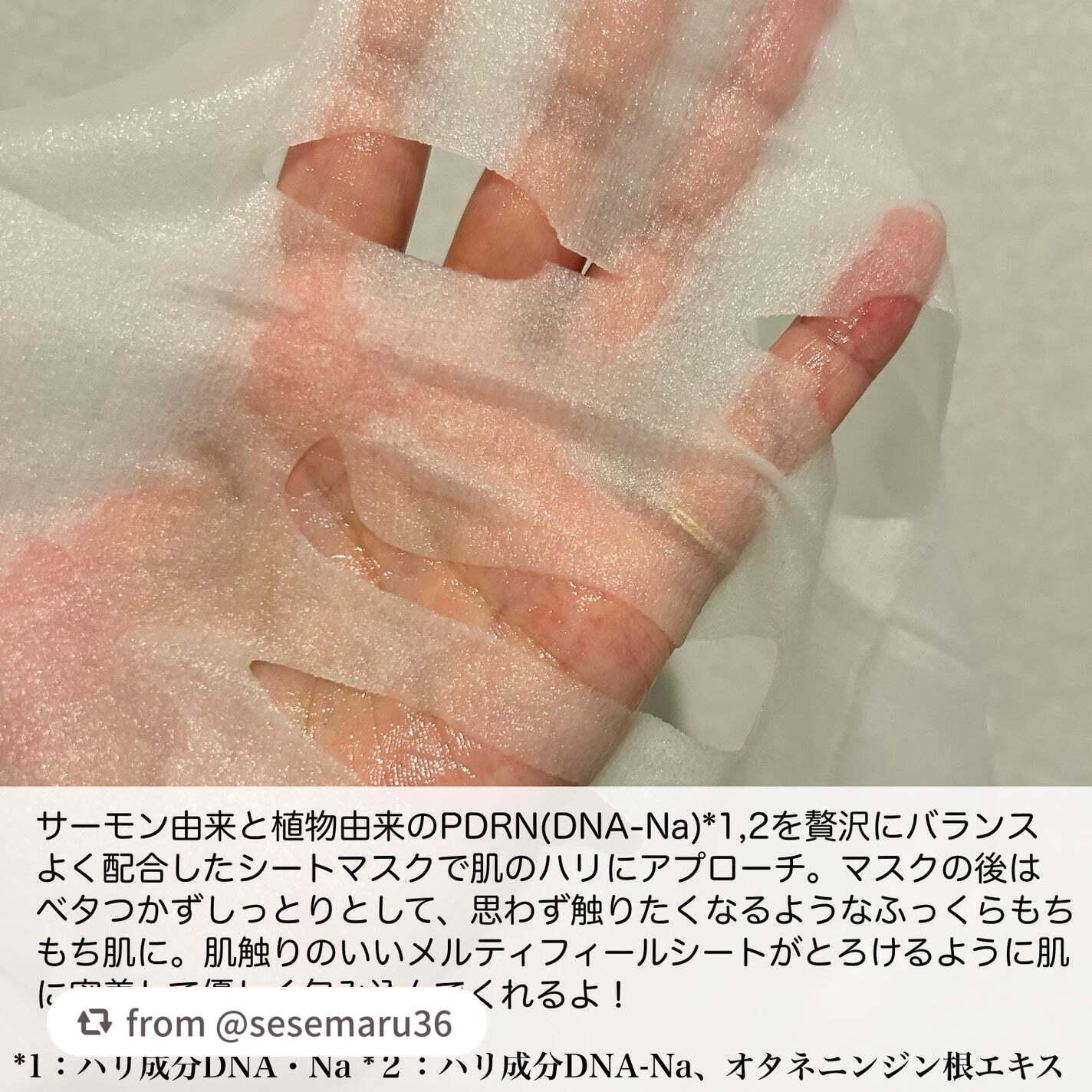 - 2025年9月1日から先行発売。 分子サイズの異なる、2種類のPDRN*1*2を配合。 内側から弾けるようなハリと弾⼒をサポートし、ふっくらうるおい、光をまとうような “光沢肌” へ導くフェイスマスクです。 低分⼦の植物由来、⾼分⼦のサーモン由来のPDRN*1*2をそれぞれ配合することで、分⼦の⼩さい⽅から順に肌へ浸透※し、段階的なアプローチを叶えます。 (*1 ハリ成分 DNA-Na、オタネニンジン根エキス *2 ハリ成分 DNA-Na ※ ⾓質層まで)