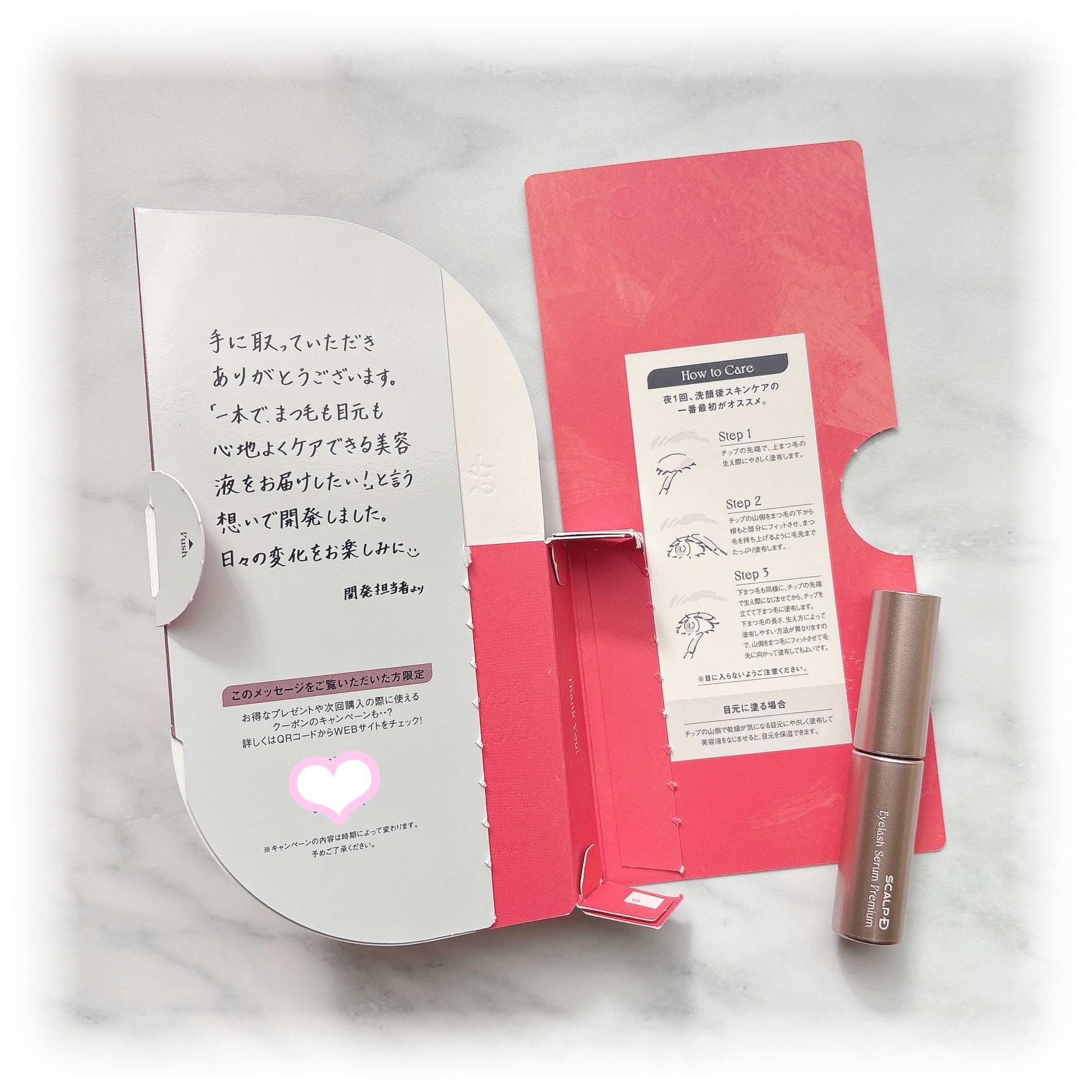 - ※2024年3月13日〜「スカルプD ボーテ ピュアフリーアイラッシュセラム プレミアム」よりリニューアル発売。 毛髪補修成分を4倍※1配合。ハリコシある美しく整ったくっきりまつ毛へ。 プレミアムダメージケア成分※2がまつ毛内部に浸透し、ハリコシある美しく整ったまつ毛へ。ブランド史上最高濃度のまつ毛補修ケアと、目元のケアも叶えます。 スカルプDが研究し、たどり着いたオリジナルチップ(ふわふわ三日月チップ)で、まつ毛にも生え際にも塗りやすく。まつ毛を持ち上げる。 フリー設計で以下8つの成分不使用! ●プロスタグランジン類似物質●防腐剤(パラベン)●アルコール(エタノール)●オイル(鉱物油)●界面活性剤●シリコン●香料●合成着色料 さらに眼刺激テスト、敏感肌対象パッチテスト、アレルギーテスト、スティンギングテストを実施済みでこだわり抜いた設計となっております。 ※すべての方にアレルギーや皮膚刺激、眼刺激が起こらないというわけではありません ※1毛髪補修成分(加水分解ケラチン(羊毛)、BG 、ジラウロイルグルタミン酸リシンNa 、DPG)をSDアイラッシュセラムピュアSSC3と比較して4倍配合 ※2毛髪補修成分(ジラウロイルグルタミン酸リシンNa、BG、糖脂質)