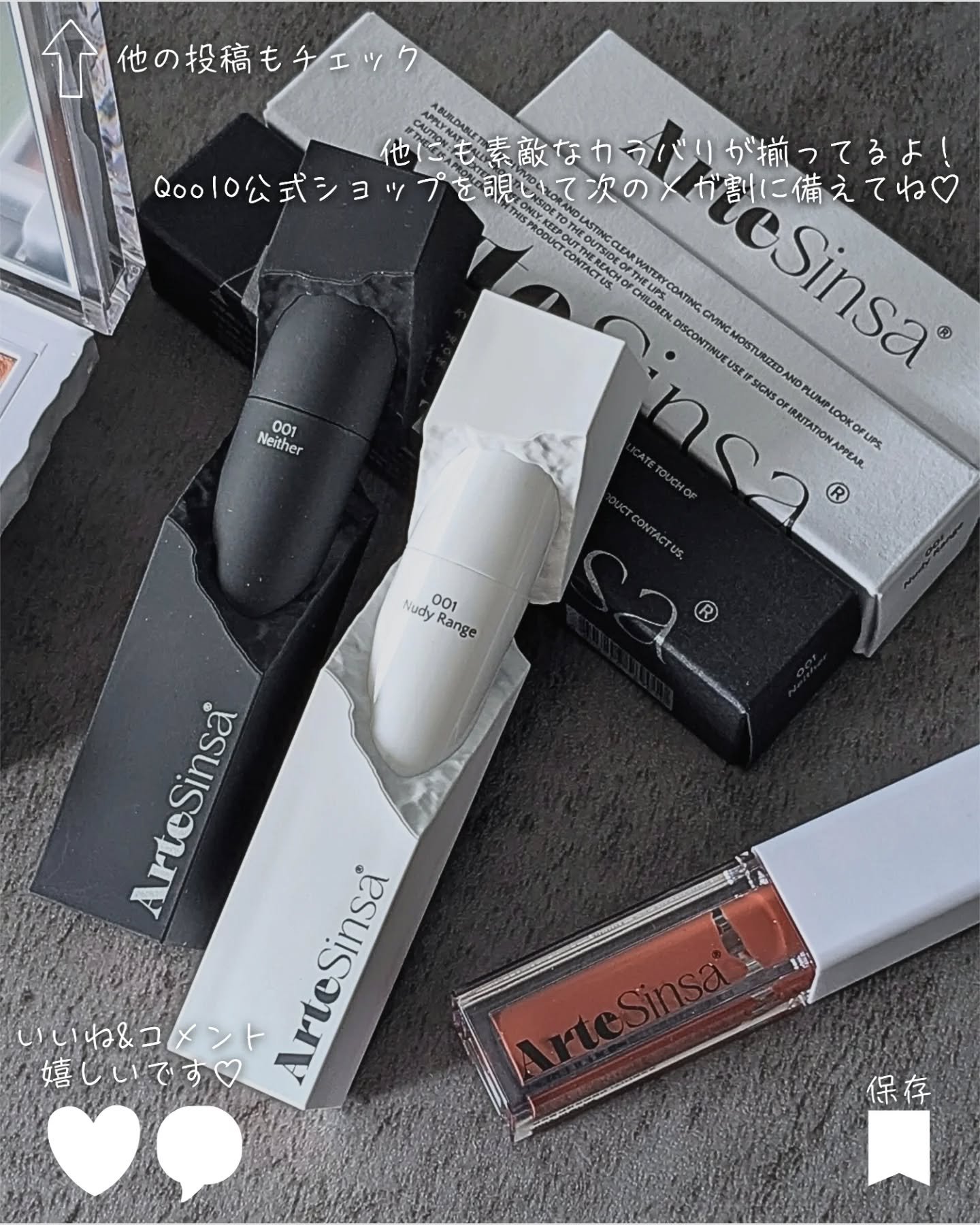 重ねるほど鮮やかに🫶発色そのまま透け感ティント🌸♡♡ArteSinsaのビルダブルデューイフィットティントをパーソナルカラー別に4色スウォッチ☺️ArteSinsaアルテシンサビルダブルデューイフィットティント001NudyRange/002...