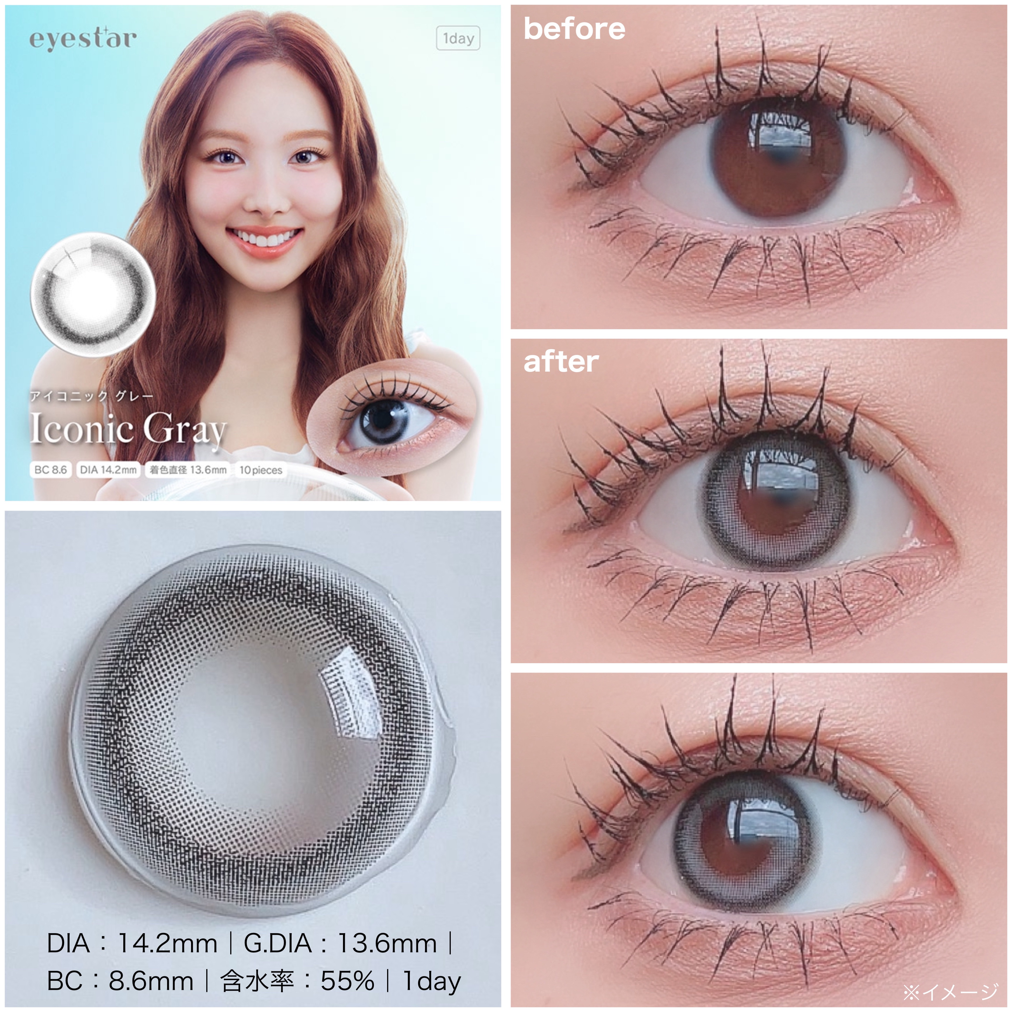 【新作カラコンブランド!𝐞𝐲𝐞𝐬𝐭𝐚𝐫💍】eyestar▪︎IconicBrown▪︎IconicGray(𝖣𝖨𝖠:𝟣𝟦.𝟤𝗆𝗆|𝖦.𝖣𝖨𝖠:𝟣𝟥.𝟨𝗆𝗆|𝖡.𝖢:𝟪.𝟨𝗆𝗆|𝟣𝖽𝖺𝗒|含水率:𝟧𝟧%|𝟣箱𝟣𝟢枚入り)各¥1,760(li...
