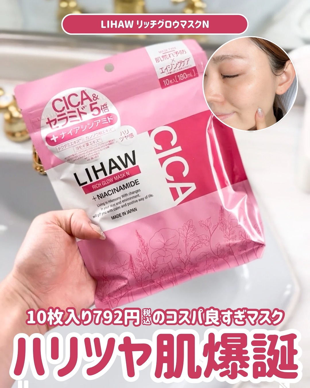 LIHAWモイストリペアマスクN10枚入り美容液量180mLこちら肌荒れも毛穴も気になる敏感肌の人にぴったりのCICA成分*&セラミド*1がなんと5倍も配合*2されたデイリーマスク🎵美容液たっぷり大きめなシートであごの下までカバーできたピタッ...