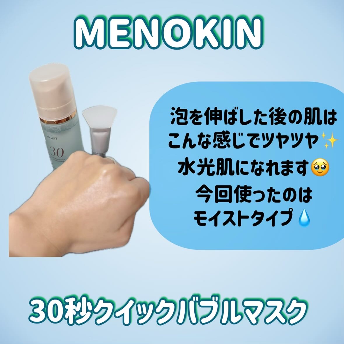 MENOKIN30秒クイックバブルマスクのモイストをいただきお試しさせていただきました♡30秒顔に泡をのせて浸透させるだけで、20分のシートマスクに勝るしっとり感🩵🫧8種類のヒアルロン酸配合で、泡パックなのにしっとり保湿されるのが嬉しいポイン...