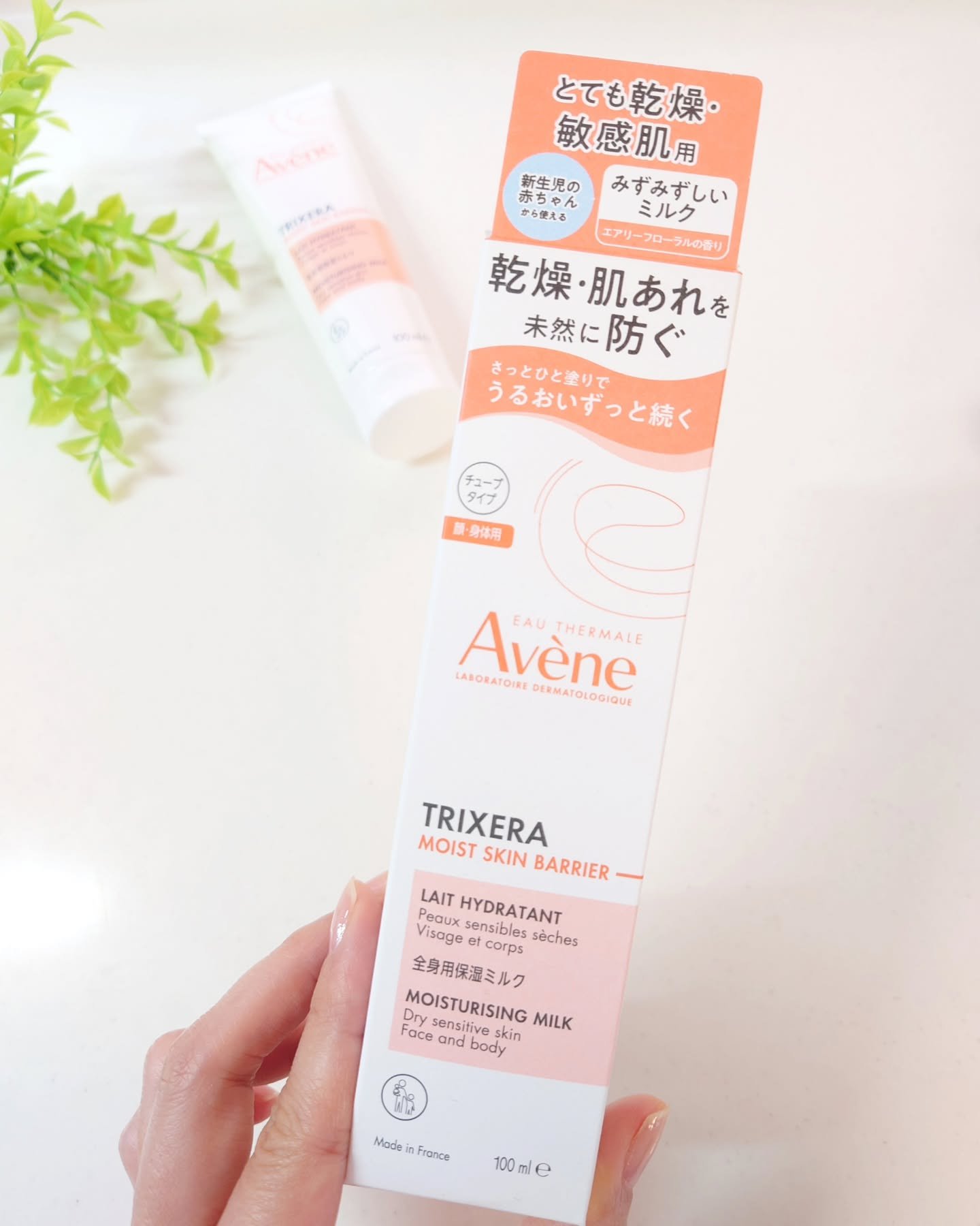 - とても乾燥する肌、敏感肌に。 乾燥・肌あれを未然に防ぐ 生まれてすぐの赤ちゃんから大人まで使える みずみずしい保湿ミルク エアリーフローラルの香り 〇植物由来成分*1がセラミド*2を補い、カサつきがちな肌の角層をうるおいで満たし、肌あれを防ぎます 〇ナイアシンアミド*3配合で、肌の「うるおいバリア」を整え、乾燥や外部刺激から肌を守ります 〇アベンヌ温泉水*4配合で、うるおいを与え、肌の土台づくりをサポートしてなめらかに整えます 〇みずみずしくべたつかないテクスチャーで、カサつく肌になめらかにのびて素早くなじみます 〇顔にも身体にもお使いいただけます 〇自然由来指数97%(水を含む)(ISO 16128に基づき算出) *1オオアザミ種子油(皮膚コンディショニング成分) *2保湿成分 *3整肌成分 *4温泉水(整肌成分) 無着色、無鉱物油、紫外線吸収剤不使用、アルコールフリー、パラベンフリー、アレルギーテスト済(すべての方にアレルギーが起こらないということではありません) ~使い方~ 手のひらに適量をとり、1日1~2回塗布します。