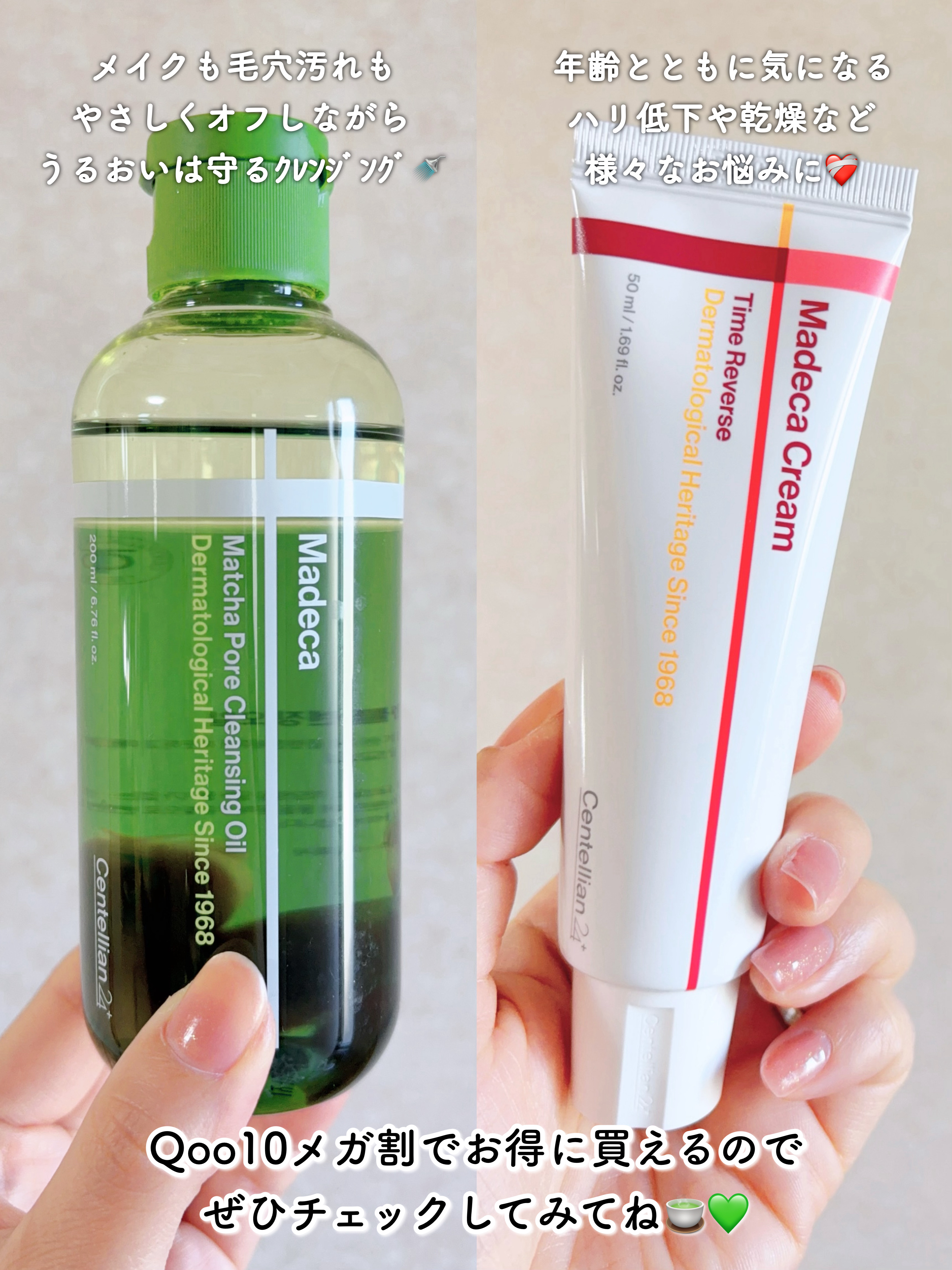 センテリアン24から待望の新作『マデカ抹茶ポアクレンジングオイル』が登場🎊代表商品『マデカクリームタイムリバース』と同じくツボクサの希少成分“TECA”が配合されており、あわせ使いすれば秋冬の保湿もバッチリ🌱🫧Qoo10メガ割で購入できます🛒...