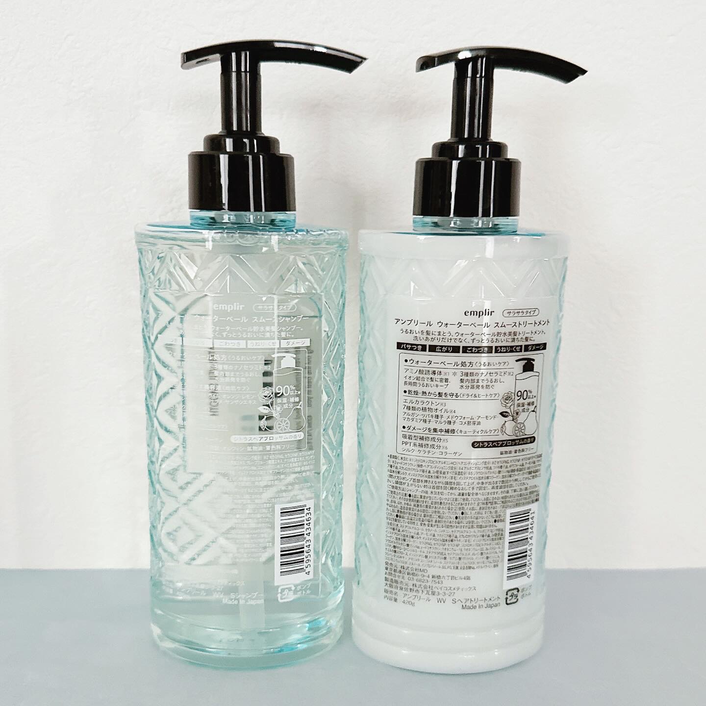 アンプリールウォーターベール✔スムースシャンプー✔トリートメント✔ヘアミルクアンプリール独自の”ウォーターベール処方”🌿水分蒸発から髪を守りうるおいを長時間キープ👏シトラスペアブロッサムの香りが上品で、やさしく濃密な泡で洗い上げ🫧🧴密着型モイ...