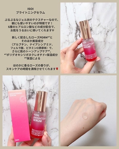 どんどん沼るアイソイ🩷ISOIブライトニングセラムオリヤンで12年以上も愛されてるISOIのセラムがリニューアル👗✨ブルガリアンローズオットーオイルとローズPDRN*1を新たに配合してパワーアップ🌹その他の美容成分(アルブチン、ナイアシンアミ...