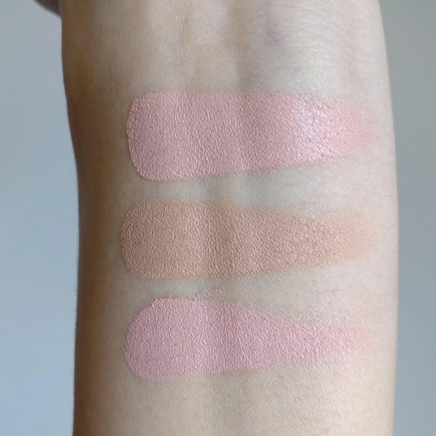 イルミの01が最もキラキラが強く、並べてみるとほんの少し緑を感じるので赤みカバーができるかも 02はくすみに 03は血色感でピンクの濃さはのばすと肌になじむ ブライトはカバー力高めでややさっぱり UVはイルミ同様みずみずしくてSPF値高め イルミ01〜03はのばすとパール感薄まるのでハイライターとしても使える ブライトは他よりカバー力高いかわりに若干キシキシを感じる UVはツヤと質感のバランスがいいけどみずみずしいから夏にはちょっと崩れやすいかも