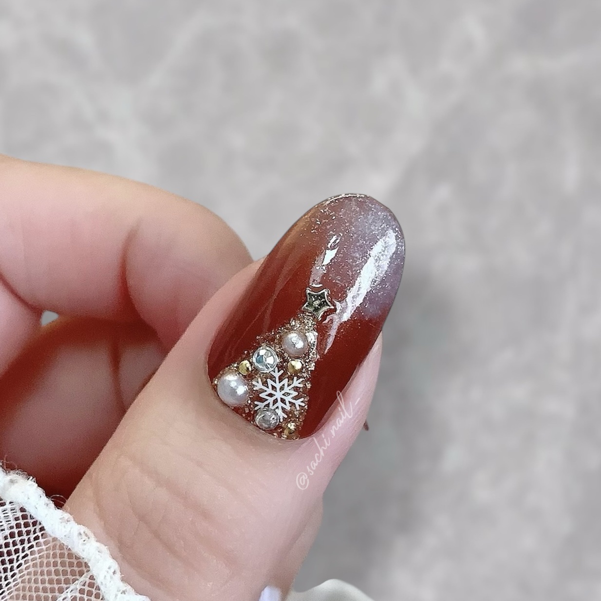ワンカラーでも指ごとに色を変えるだけでオシャレに見えます💕 画像のようにゴールドラインとストーンを少し足すだけで華やかさがアップ🥰 何度かご紹介したことのあるスポンジで作るグラデーションです✨ スポンジを使うことで境目が綺麗に馴染んでくれます💕 アルミホイルの上でブラウンとトップコートを1:1くらいで混ぜたものを、トップコートのハケに取って3箇所に塗るだけ👌 事前に混ぜたものを塗ることで、爪の上でぼかすより簡単に出来ます💕 ベースカラーが乾く前に点置きしてぼかすことで綺麗にぼかせます✨ スピードが大事なので、使うポリッシュのキャップは全て開けておきましょう😊 天然石のラインはガタガタの方がより天然石っぽく見えるので、ラインを描くのが苦手な方でも大丈夫🙆♀️ 難しそうに見えて、やってみると意外と簡単に出来ます♡