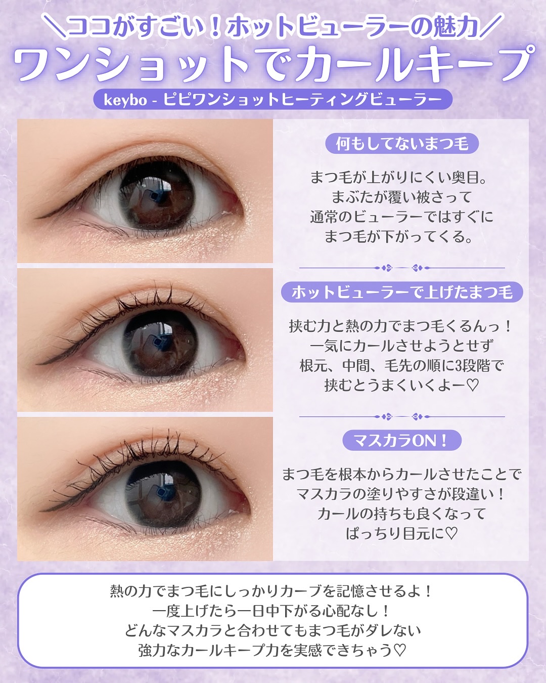 Keybo様よりヒーティングビューラーをご提供頂きました💘ホットビューラーでトング型って初めてだったので、最初使うときはアチってならなかいかな?!っと心配しましたが💦全く問題ないどころか、使いやすい😌アーチは日本人の目の形にフィットするような...