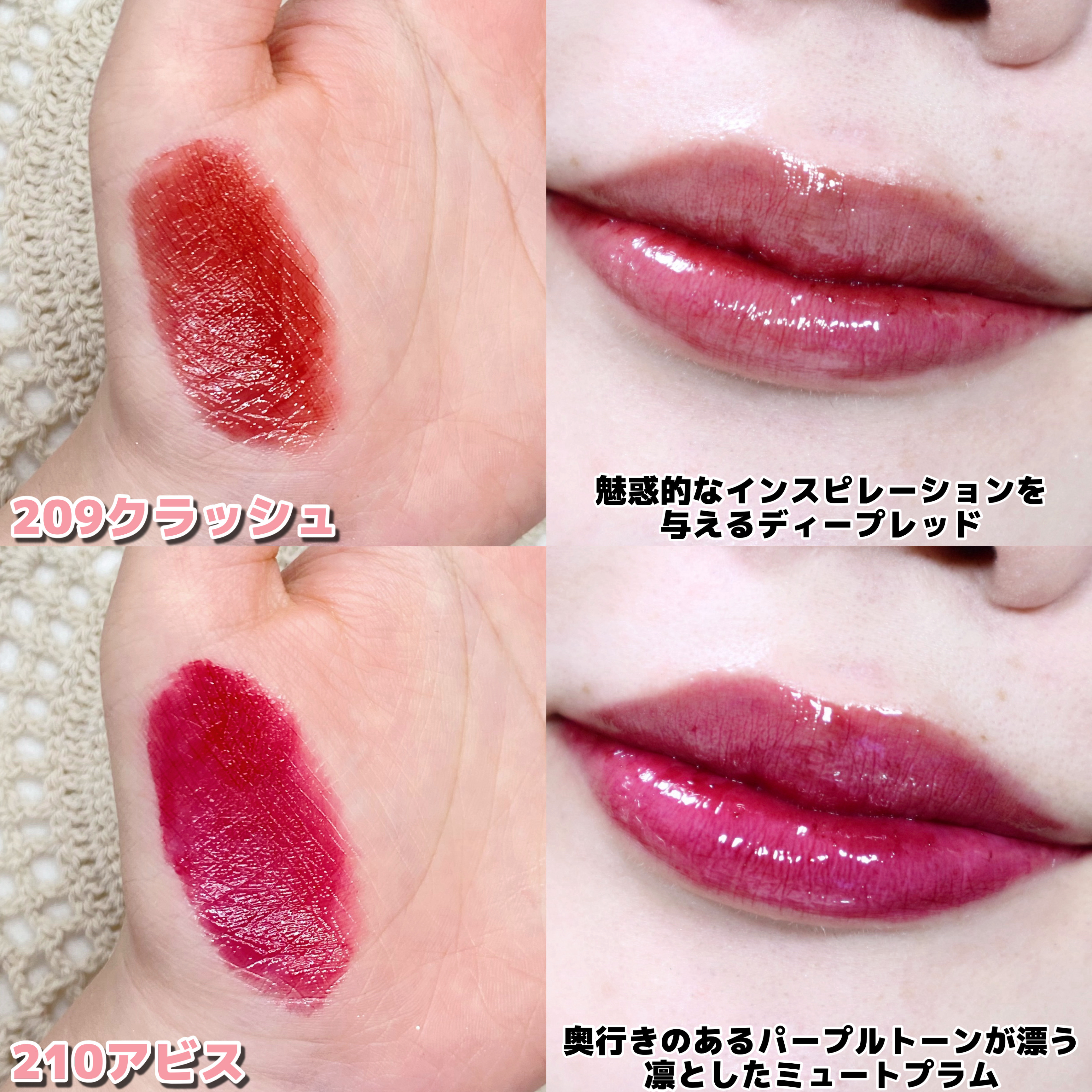 - <201 フェアリー> ダイマージリノール酸ジイソステアリル、ジフェニルシロキシフェニルトリメチコン、ビスジグリセリルポリアシルアジペート-2、水、ジフェニルジメチコン、水添ポリイソブテン、セチルPEG/PPG-10/1ジメチコン、ポリソルベート60、ペンチレングリコール、グリセリン、イソステアリン酸ポリグリセリル-4、フェノキシエタノール、1,2-ヘキサンジオール、セテアレス-20、酸化チタン (CI 77891)、(アクリル酸ヒドロキシエチル/アクリロイルジメチルタウリンNa)コポリマー、ステビオシド、スクワラン、香料、ジラウラミドグルタミドリシンNa、エチルヘキシルグリセリン、エチレンジアミンジコハク酸3Na、赤色227号 (CI 17200)、水酸化Al、黄色5号 (CI 15985)、ポリアクリル酸アンモニウム、イソステアリン酸ソルビタン、黄色4号 (CI 19140)、BG、赤色223号 (CI 45410)、青色1号 (CI 42090)、アラントイン、パンテノール、ツボクサエキス、ヒアルロン酸、加水分解ヒアルロン酸、ヒアルロン酸Na <203 バブリー> ダイマージリノール酸ジイソステアリル、ジフェニルシロキシフェニルトリメチコン、ビスジグリセリルポリアシルアジペート-2、水、ジフェニルジメチコン、水添ポリイソブテン、セチルPEG/PPG-10/1ジメチコン、ポリソルベート60、ペンチレングリコール、グリセリン、イソステアリン酸ポリグリセリル-4、フェノキシエタノール、1,2-ヘキサンジオール、セテアレス-20、(アクリル酸ヒドロキシエチル/アクリロイルジメチルタウリンNa)コポリマー、ステビオシド、酸化チタン (CI 77891)、スクワラン、香料、ジラウラミドグルタミドリシンNa、エチルヘキシルグリセリン、赤色227号 (CI 17200)、エチレンジアミンジコハク酸3Na、黄色5号 (CI 15985)、イソステアリン酸ソルビタン、水酸化Al、ポリアクリル酸アンモニウム、黄色4号 (CI 19140)、BG、青色1号 (CI 42090)、アラントイン、パンテノール、ツボクサエキス、ヒアルロン酸、加水分解ヒアルロン酸、ヒアルロン酸Na <204 レア> ダイマージリノール酸ジイソステアリル、ジフェニルシロキシフェニルトリメチコン、ビスジグリセリルポリアシルアジペート-2、水、ジフェニルジメチコン、水添ポリイソブテン、セチルPEG/PPG-10/1ジメチコン、ポリソルベート60、ペンチレングリコール、グリセリン、イソステアリン酸ポリグリセリル-4、フェノキシエタノール、1,2-ヘキサンジオール、セテアレス-20、(アクリル酸ヒドロキシエチル/アクリロイルジメチルタウリンNa)コポリマー、酸化チタン (CI 77891)、ステビオシド、スクワラン、香料、ジラウラミドグルタミドリシンNa、エチルヘキシルグリセリン、赤色227号 (CI 17200)、黄色5号 (CI 15985)、エチレンジアミンジコハク酸3Na、イソステアリン酸ソルビタン、水酸化Al、ポリアクリル酸アンモニウム、黄色4号 (CI 19140)、青色1号 (CI 42090)、BG、アラントイン、パンテノール、ツボクサエキス、ヒアルロン酸、加水分解ヒアルロン酸、ヒアルロン酸Na <205 ハニーデュー> ダイマージリノール酸ジイソステアリル、ジフェニルシロキシフェニルトリメチコン、ビスジグリセリルポリアシルアジペート-2、水、ジフェニルジメチコン、水添ポリイソブテン、セチルPEG/PPG-10/1ジメチコン、ポリソルベート60、ペンチレングリコール、グリセリン、イソステアリン酸ポリグリセリル-4、フェノキシエタノール、1,2-ヘキサンジオール、セテアレス-20、(アクリル酸ヒドロキシエチル/アクリロイルジメチルタウリンNa)コポリマー、酸化チタン (CI 77891)、ステビオシド、スクワラン、香料、ジラウラミドグルタミドリシンNa、エチルヘキシルグリセリン、赤色227号 (CI 17200)、黄色5号 (CI 15985)、エチレンジアミンジコハク酸3Na、イソステアリン酸ソルビタン、水酸化Al、ポリアクリル酸アンモニウム、黄色4号 (CI 19140)、青色1号 (CI 42090)、BG、アラントイン、パンテノール、ツボクサエキス、ヒアルロン酸、加水分解ヒアルロン酸、ヒアルロン酸Na <206 トフィー> ダイマージリノール酸ジイソステアリル、ジフェニルシロキシフェニルトリメチコン、ビスジグリセリルポリアシルアジペート-2、水、ジフェニルジメチコン、水添ポリイソブテン、セチルPEG/PPG-10/1ジメチコン、ポリソルベート60、ペンチレングリコール、グリセリン、イソステアリン酸ポリグリセリル-4、フェノキシエタノール、1,2-ヘキサンジオール、セテアレス-20、(アクリル酸ヒドロキシエチル/アクリロイルジメチルタウリンNa)コポリマー、ステビオシド、スクワラン、香料、ジラウラミドグルタミドリシンNa、酸化チタン (CI 77891)、エチルヘキシルグリセリン、黄色5号 (CI 15985)、エチレンジアミンジコハク酸3Na、黄色4号 (CI 19140)、赤色227号 (CI 17200)、イソステアリン酸ソルビタン、赤色223号 (CI 45410)、青色1号 (CI 42090)、水酸化Al、ポリアクリル酸アンモニウム、BG、アラントイン、パンテノール、ツボクサエキス、ヒアルロン酸、加水分解ヒアルロン酸、ヒアルロン酸Na <207 フレイム> ダイマージリノール酸ジイソステアリル、ジフェニルシロ