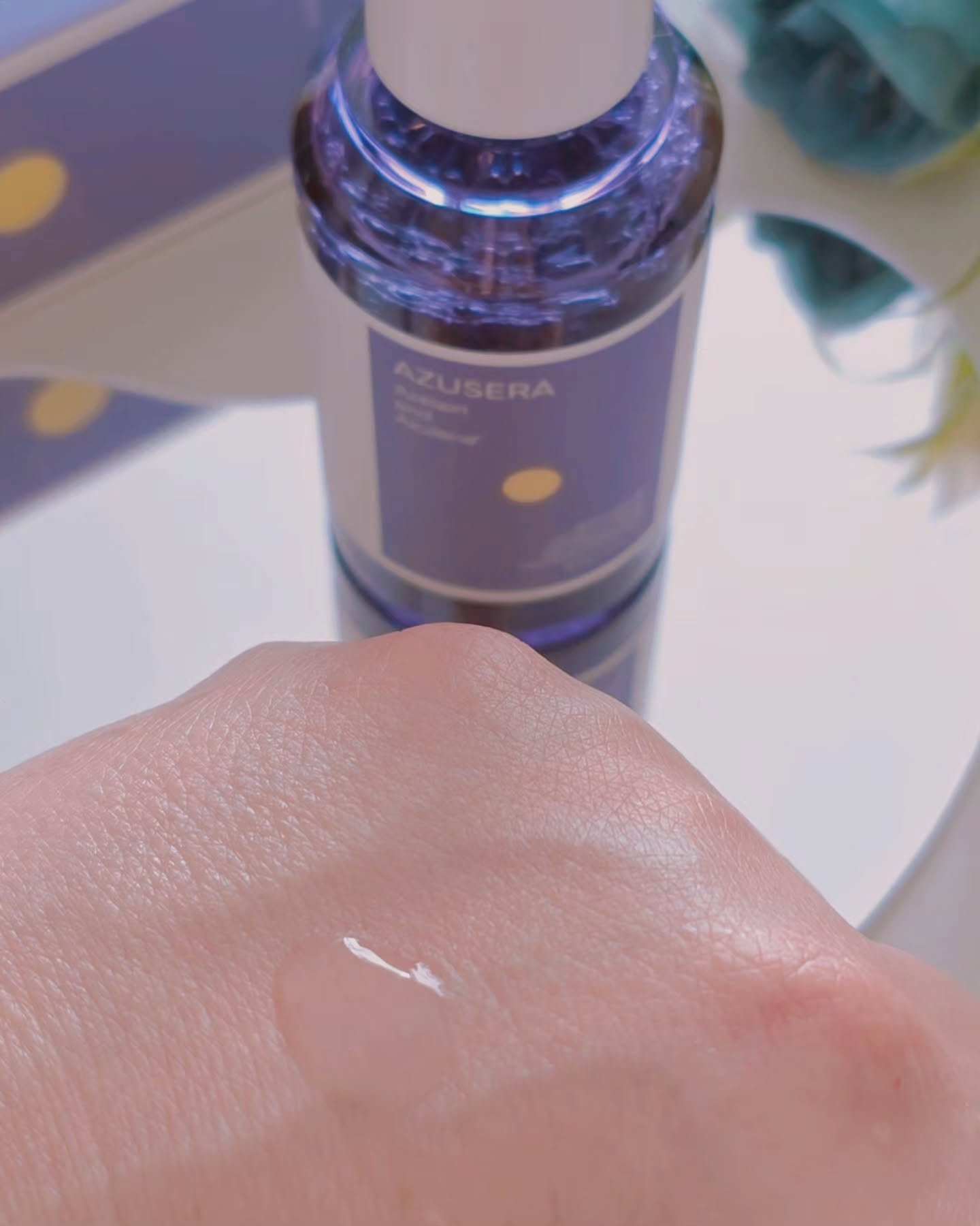 𝔸ℤ𝕌𝕊𝔼ℝ𝔸▶︎AZUSERA美容液ややとろみのあるさらっとしたテクスチャー肌馴染みがよく肌にすーっと浸透🌿肌が潤ってもちもちになる感じがするのにベタつかない🤍カモミール由来の青い天然成分「*アズレン」で肌荒れをケアしてくれる^^*グアイア...