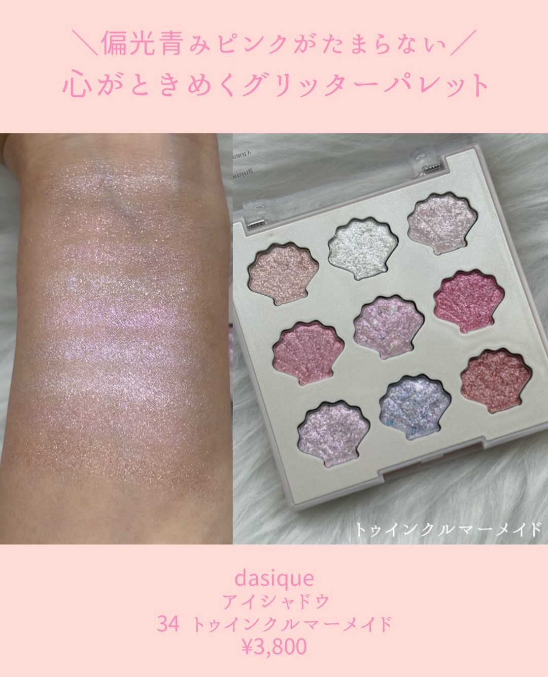 メガ割でオススメ!dasiqueの商品紹介☆【アイシャドウパレット34トゥインクルマーメイド】ゆめかわでかわいいキレイめな発色💖可愛くプレゼントにもおすすめ💖【ハイライターパレット01トゥインクルマーメイド】自然な発色なので涙袋やアイシャドウ...