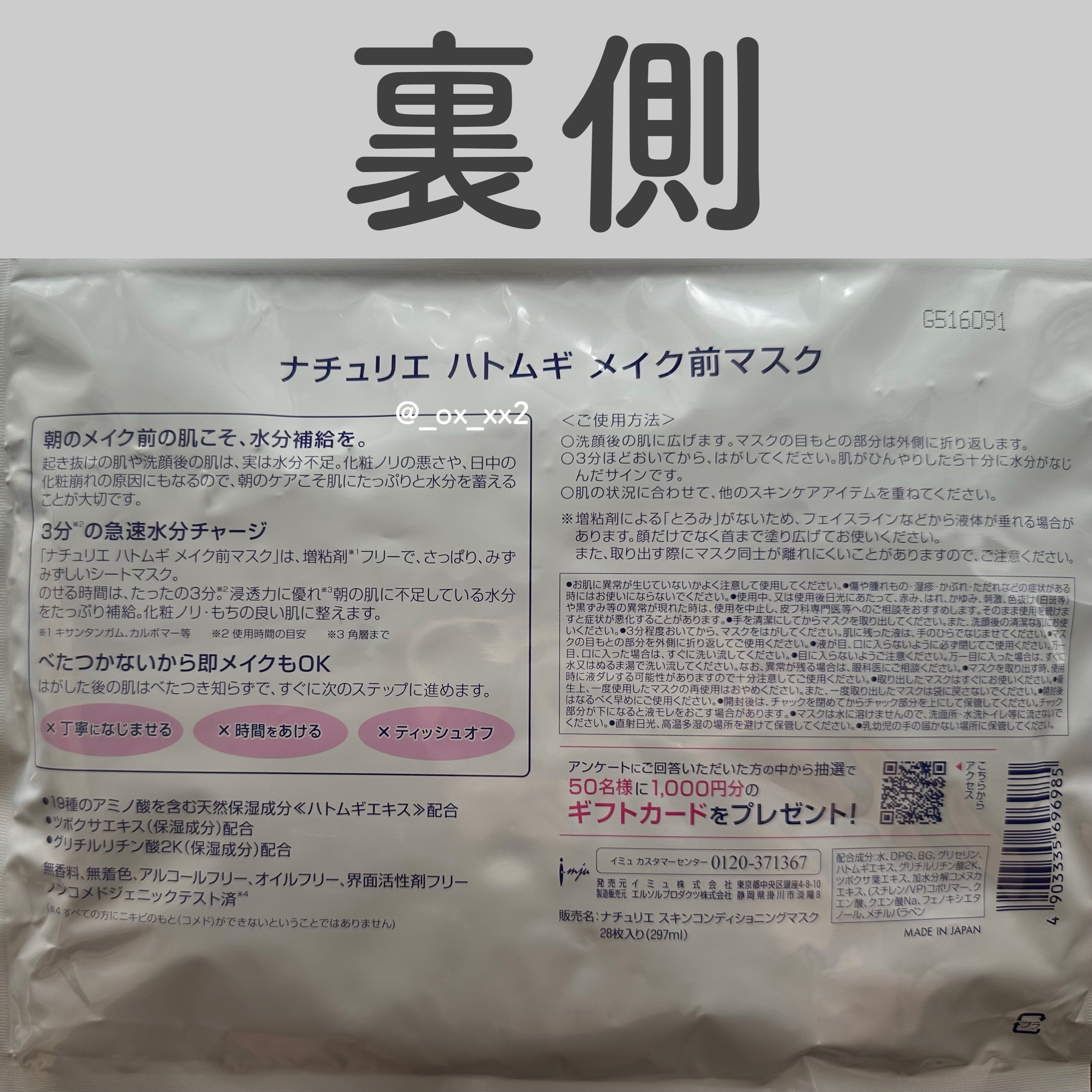 商品詳細情報ナチュリエ ハトムギ メイク前マスク