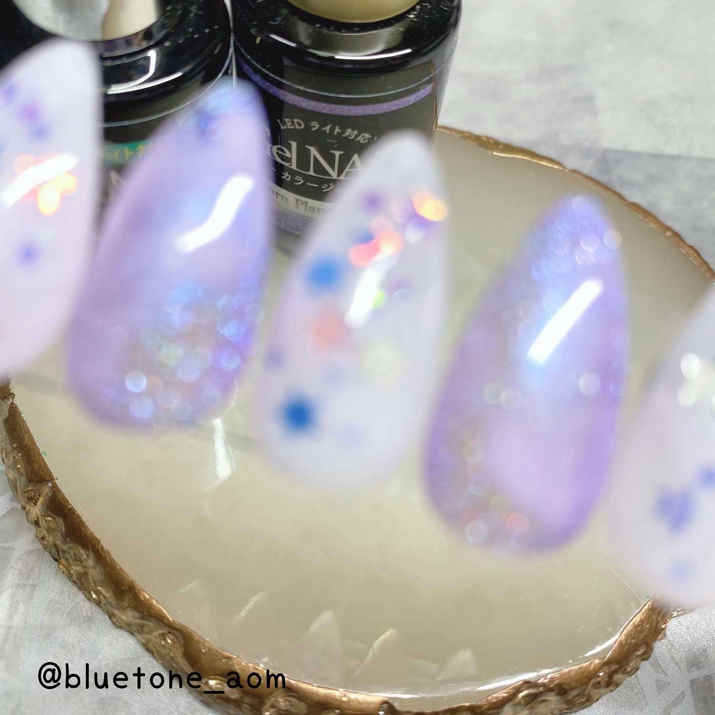 #セルフネイル記録パープルを主役に儚げなオーロラをミックスして作ってみたよ今回使ったのは・ネイル工房5ミクロンマグネット(12)・セリアジェルネイル(BlueGRAY)(JellyWHITE)・NAILTOWNGALAXY(17)・DAISO...