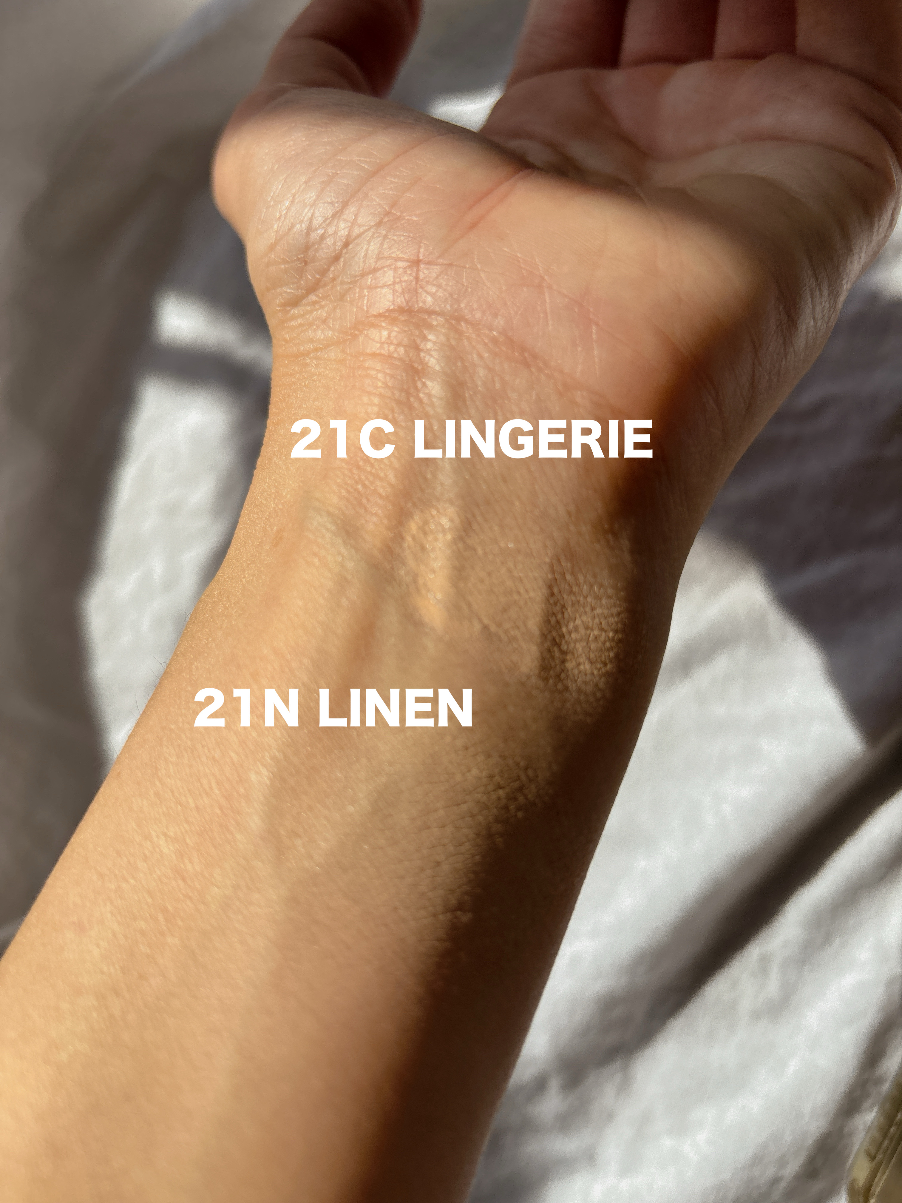 - <19Cライト> 水、ジメチコン、トリメチルシロキシケイ酸、イソドデカン、BG、エチルヘキサン酸セチル、ラウリルPEG-10トリス(トリメチルシロキシ)シリルエチルジメチコン、合成フルオロフロゴパイト、炭酸ジカプリリル、ナイアシンアミド、1,2-ヘキサンジオール、PEG-10ジメチコン、(ビスヒドロキシプロピルジメチコン/SMDI)コポリマー、硫酸Mg、ペンタイソステアリン酸ジペンタエリスリチル、ステアリン酸、トリエトキシカプリリルシラン、アルミナ、水酸化Al、(ジメチコン/ビニルジメチコン)クロスポリマー、オクチルドデカノール、香料、ジステアルジモニウムヘクトライト、アデノシン、エチレンジアミンジコハク酸3Na、イソステアリン酸ポリグリセリル-4、ジミリスチン酸Al、トリイソステアリン酸イソプロピルチタン、トコフェロール、ツボクサ葉エキス、酸化チタン、酸化鉄、マイカ <21C ランジェリー> 水、ジメチコン、トリメチルシロキシケイ酸、イソドデカン、BG、エチルヘキサン酸セチル、ラウリルPEG-10トリス(トリメチルシロキシ)シリルエチルジメチコン、合成フルオロフロゴパイト、炭酸ジカプリリル、ナイアシンアミド、1,2-ヘキサンジオール、PEG-10ジメチコン、(ビスヒドロキシプロピルジメチコン/SMDI)コポリマー、硫酸Mg、ペンタイソステアリン酸ジペンタエリスリチル、オクチルドデカノール、ステアリン酸、トリエトキシカプリリルシラン、アルミナ、水酸化Al、(ジメチコン/ビニルジメチコン)クロスポリマー、香料、ジステアルジモニウムヘクトライト、イソステアリン酸ポリグリセリル-4、アデノシン、エチレンジアミンジコハク酸3Na、ジミリスチン酸Al、トリイソステアリン酸イソプロピルチタン、トコフェロール、ツボクサ葉エキス、酸化チタン、酸化鉄、マイカ <21N リネン> 水、ジメチコン、トリメチルシロキシケイ酸、イソドデカン、BG、エチルヘキサン酸セチル、ラウリルPEG-10トリス(トリメチルシロキシ)シリルエチルジメチコン、合成フルオロフロゴパイト、炭酸ジカプリリル、ナイアシンアミド、1,2-ヘキサンジオール、PEG-10ジメチコン、(ビスヒドロキシプロピルジメチコン/SMDI)コポリマー、硫酸Mg、ペンタイソステアリン酸ジペンタエリスリチル、オクチルドデカノール、ステアリン酸、トリエトキシカプリリルシラン、アルミナ、水酸化Al、(ジメチコン/ビニルジメチコン)クロスポリマー、香料、ジステアルジモニウムヘクトライト、イソステアリン酸ポリグリセリル-4、アデノシン、エチレンジアミンジコハク酸3Na、ジミリスチン酸Al、トリイソステアリン酸イソプロピルチタン、トコフェロール、ツボクサ葉エキス、酸化チタン、酸化鉄、マイカ <23N ジンジャー> 水、ジメチコン、トリメチルシロキシケイ酸、イソドデカン、BG、エチルヘキサン酸セチル、ラウリルPEG-10トリス(トリメチルシロキシ)シリルエチルジメチコン、合成フルオロフロゴパイト、炭酸ジカプリリル、ナイアシンアミド、1,2-ヘキサンジオール、PEG-10ジメチコン、(ビスヒドロキシプロピルジメチコン/SMDI)コポリマー、オクチルドデカノール、硫酸Mg、ペンタイソステアリン酸ジペンタエリスリチル、ステアリン酸、トリエトキシカプリリルシラン、アルミナ、水酸化Al、(ジメチコン/ビニルジメチコン)クロスポリマー、香料、イソステアリン酸ポリグリセリル-4、ジステアルジモニウムヘクトライト、トリイソステアリン酸イソプロピルチタン、アデノシン、エチレンジアミンジコハク酸3Na、ジミリスチン酸Al、トコフェロール、ツボクサ葉エキス、酸化チタン、酸化鉄、マイカ