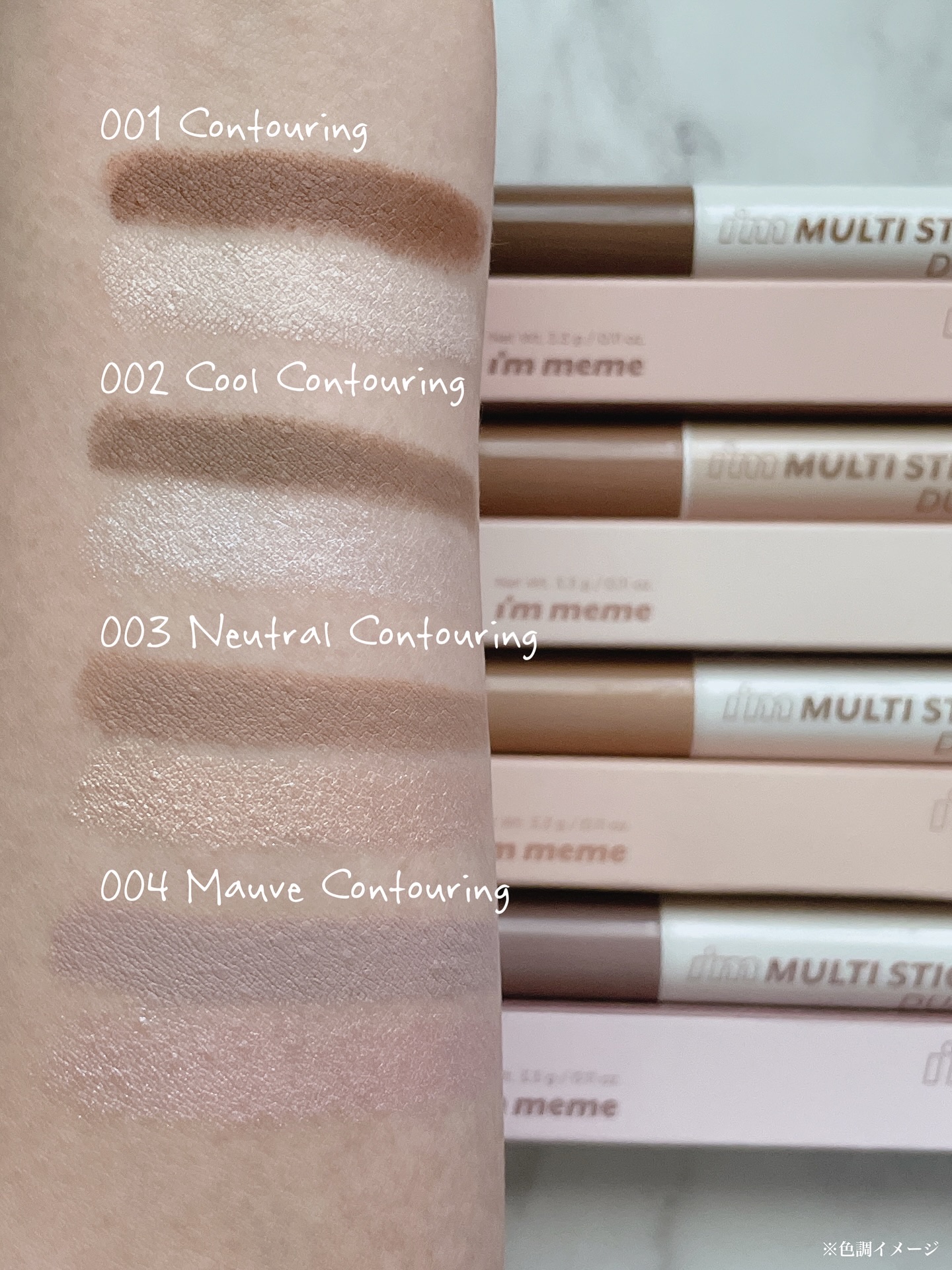 先日のCosmeLabで出会ったお気に入りのアイテム♡ *アイムミミ▷アイムマルチスティックデュアル004モーヴコントゥアリング(数量限定色)シェーディングとハイライトが1本になった大人気スティックから、ブルベ向けの限定色“004モーヴコント...