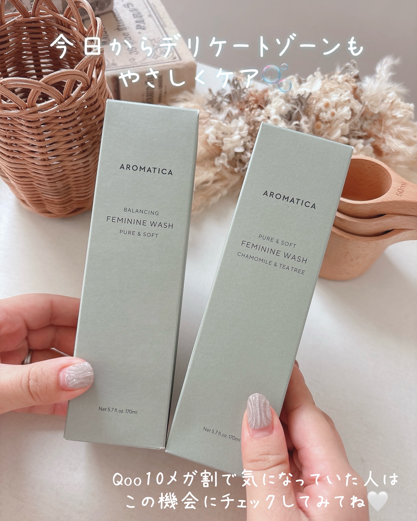 AROMATICA✔︎フェミニンウォッシュピュア&ソフト✔︎フェミニンウォッシュカモミール&ティーツリーお洒落な見た目でバスルームに置いても気分が上がるフェミニンウォッシュ🌿ワンプッシュでふわふわの泡が出てくるから、デリケートゾーンケア...