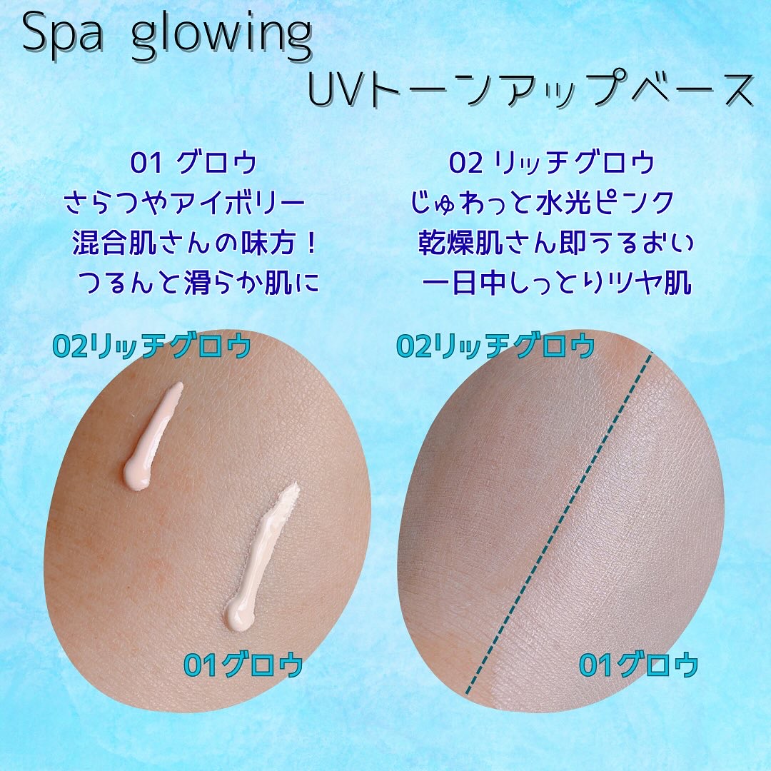 - スパグロウUVトーンアップベースはたったたった一層の差で肌の土台を変える、キメも毛穴も瞬間カバーする私史上最強化粧ノリベースです。 リアルスパ成分配合で、水分チャージから美白ケアまでこれ1つで完結。 理想の仕上がりを追求し、肌タイプに合わせて2種類からお選びいただけます。 01グロウはツヤ肌が好きだけどテカリは苦手で、毛穴までしっかりカバーしたい混合肌の方におすすめ。 02 リッチグロウは乾燥によるメイク崩れにお悩みで軽いのに強力なUVカットまで求める乾燥肌の方におすすめします。 11月1日(土)に開催予定のQoo10メガセールにて、「スパグロウUVトーンアップベース」がついに販売開始