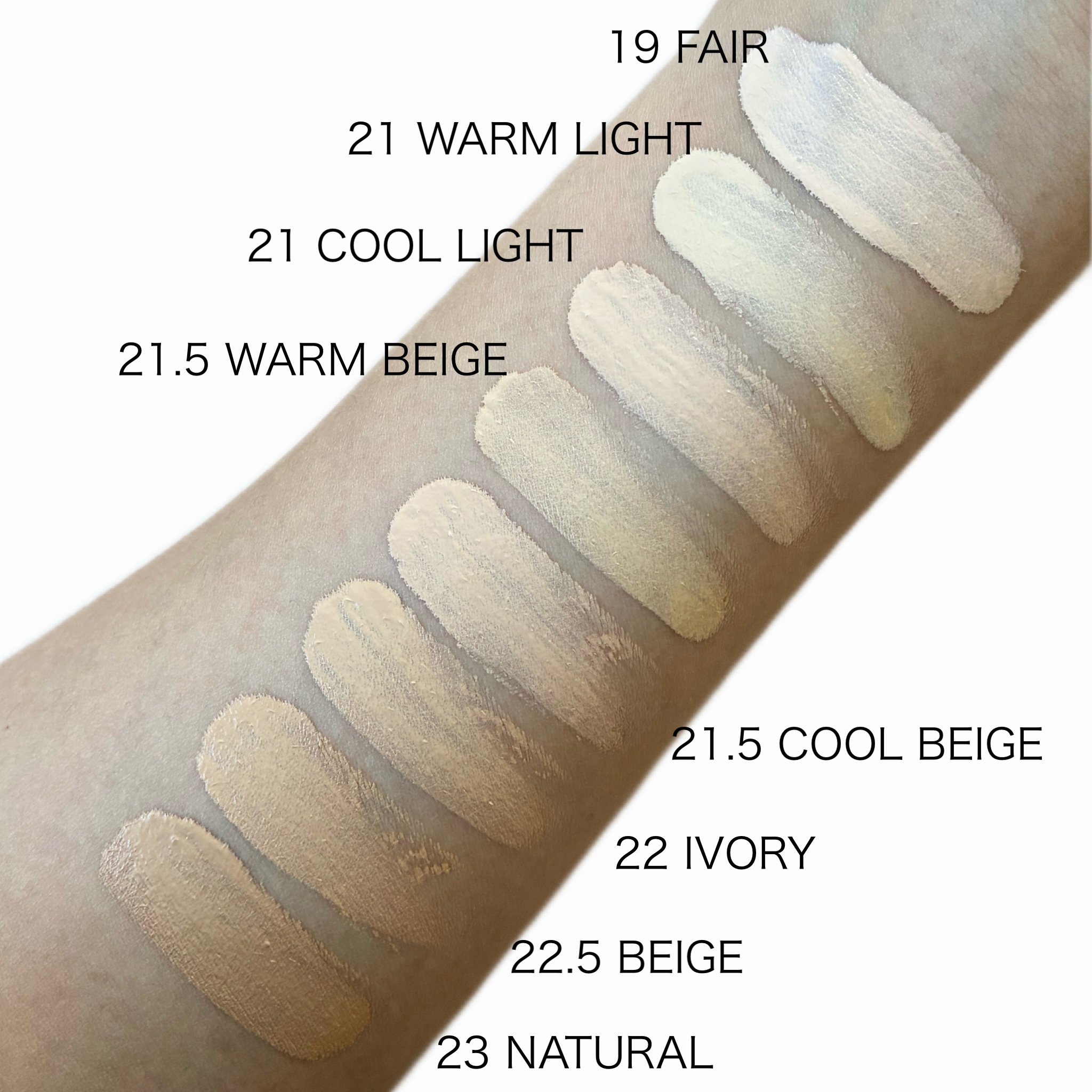- < 21.5C クールベージュ> 酸化チタン、精製水、シクロペンタシロキサン、ブチレングリコール、フェニルトリメチコン、温泉水、グリセリン、イソドデカン、ポリグリセリル-4ジアイソステアレート/ ボリヒドロキシステアレート/セバケート、ジカプリル酸カーボネート、ブチルオクチルサリチレート、ナイアシンアミド、ラウリルPEG-9ポリジメチルシロキシエチルジメチコン、ジアイソステアリルマレート、トリメチルシロキシシリケート、酸化鉄(黄)、マイカ、塩化ナトリウム、プロパンジオール、アルミニウム水酸化物、ジメチコン、PEG-10ジメチコン、トリエトキシカプリリルシラン、硫酸パリウム、ジステアジモニウムヘクトライト、ソルビタンイソステアレート、ポリヒドロキシステアリン酸、ステアリン酸、カプリリルメチコン、酸化鉄(赤)、カプリリルグリコール、カプリル酸/カプリン酸トリグリセリド、グリセリルカプリレート、ポリソルベート80、ジナトリウムステアロイルグルタミン酸、エチルヘキシルグリセリン、水素添加レシチン、トリナトリウムエチレンジアミンジイソシネート、酸化鉄(黒)、イソステアリン酸、アデノシン、レシチン、ペンチレングリコール、ポリグリセリル-3ポリリシノレート、コラーゲンアミノ酸、1,2-ヘキサンジオール、ヘマトコッカスプルビアリスエキス、加水分解ヒアルロン酸、ヒアルロン酸、ヒアルロン酸Na、トコフェロール、グアイアズレンスルホネートNa、ジメチルシラノールヒアルロン酸、加水分解ヒアルロン酸Na、ヒドロキシプロピルトリモニウムヒアルロン酸、ヒアルロン酸Naクロスポリマー、ジメチルシラノールビアルロン酸Na、アセチル化ヒアルロン酸Na <19 フェア> 精製水、酸化チタン、シクロペンタシロキサン、ブチレングリコール、フェニルトリメチコン、温泉水、グリセリン、イソドデカン、ポリグリセリル-4ジアイソステアレート/ ボリヒドロキシステアレート/セバケート、ジカプリル酸カーポネート、ブチルオクチルサリチレート、ナイアシンアミド、ラウリルPEG-9ポリジメチルシロキシエチルジメチコン、ジアイソステアリルマレート、トリメチルシロキシシリケート、マイカ、塩化ナトリウム、プロパンジオール、アルミニウム水酸化物、酸化鉄(黄)、PEG-10ジメチコン、硫酸バリウム、ジステアジモニウムヘクトライト、ソルビタンイソステアレート、トリエトキシカプリリルシラン、ジメチコン、ポリヒドロキシステアリン酸、ステアリン酸、カプリリルグリコール、カプリル酸/カプリン酸トリグリセリド、カプリリルメチコン、グリセリルカプリレート、酸化鉄(赤)、ポリソルペート80、ジナトリウムステアロイルグルタミン酸、エチルヘキシルグリセリン、水素添加レシチン、トリナトリウムエチレンジアミンジイソシネート、イソステアリン酸、アデノシン、酸化鉄(黒)、レシチン、ペンチレングリコール、ポリグリセリル-3ポリリシノレート、コラーゲンアミノ酸、1,2-ヘキサンジオール、ヘマトコカスプルビアリスエキス、加水分解ヒアルロン酸、ヒアルロン酸、ヒアルロン酸ナトリウム、トコフェロール、グアイアズレンスルホネートナトリウム、ジメチルシラノールヒアルロン酸、加水分解ナトリウムヒアルロン酸、ヒドロキシプロピルトリモニウムヒアルロン酸、ヒアルロン酸ナトリウムクロスポリマー、ジメチルシラノールヒアルロン酸ナトリウム、アセチル化ヒアルロン酸ナトリウム <21.5W ウォームベージュ> 酸化チタン、精製水、シクロペンタシロキサン、ブチレングリコール、フェニルトリメチコン、温泉水、グリセリン、イソドデカン、ポリグリセリル-4ジアイソステアレート/ ポリヒドロキシステアレート/セバケート、ジカプリル酸カーボネート、ブチルオクチルサリチレート、ナイアシンアミド、ラウリルPEG-9ポリジメチルシロキシエチルジメチコン、酸化鉄(黄)、ジアイソステアリルマレート、トリメチルシロキシシリケート、マイカ、ジメチコン、塩化ナトリウム、プロパンジオール、アルミニウム水酸化物、PEG-10ジメチコン、トリエトキシカプリリルシラン、硫酸パリウム、ジステアジモニウムヘクトライト、ソルビタンイソステアレート、ポリヒドロキシステアリン酸、ステアリン酸、カプリリルメチコン、カプリリルグリコール、酸化鉄(赤)、カプリル酸/カプリン酸トリグリセリド、グリセリルカプリレート、ポリソルベート80、ジナトリウムステアロイルグルタミン酸、エチルヘキシルグリセリン、水素添加レシチン、酸化鉄(黒)、トリナトリウムエチレンジアミンジ酢酸、イソステアリン酸、アデノシン、レシチン、ペンチレングリコール、ポリグリセリル-3ポリリシノレート、コラーゲンアミノ酸、1,2-ヘキサンジオール、ヘマトコッカスプルビアリスエキス、加水分解ヒアルロン酸、ヒアルロン酸、ヒアルロン酸Na、トコフェロール、グアイアズレンスルホネートNa、ジメチルシラノールヒアルロン酸、加水分解ヒアルロ