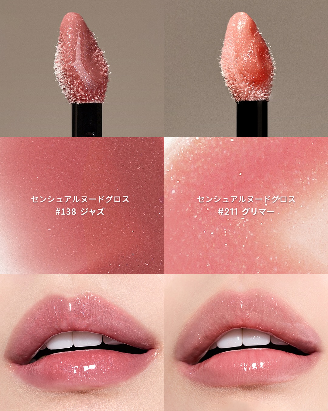 【SENSUALNUDEGLOSSSWATCH】透明感のあるツヤと、ふっくらとした唇を演出するSENSUALNUDEGLOSS💖全10色のパーソナルカラー別スウォッチをご紹介。お気に入りカラーを見つけてみてね♥▼SPRING/WARM#422...