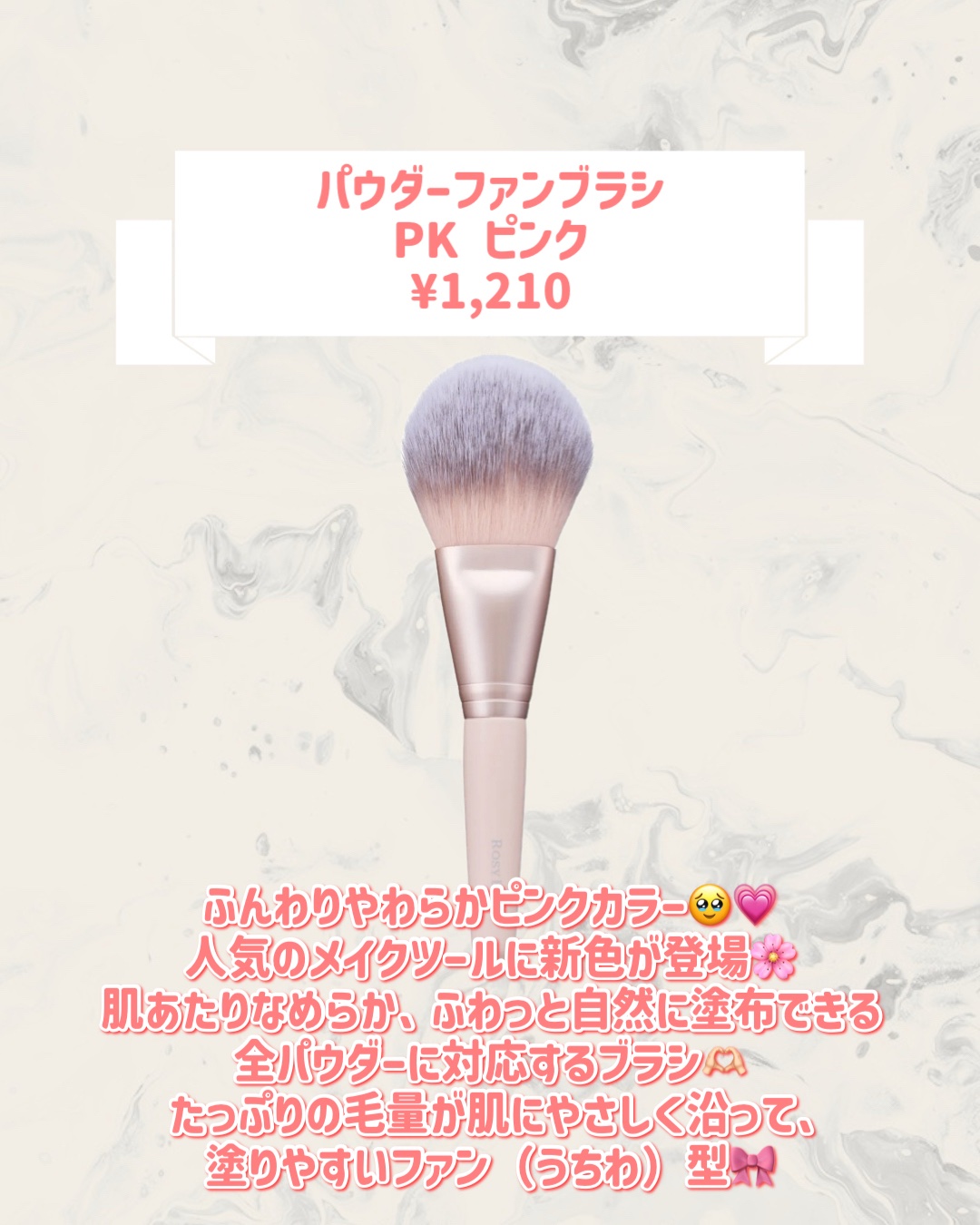ロージーローザの新作ブラシはたっぷり毛量でふわふわ🫢 ファン(うちわ)型の幅広ブラシで骨格ラインにフィット。肌あたりも柔らかいんです🥹✨ 穂先を守るケース付きで持ち運びにも◎ そしてこのお手頃なお値段。