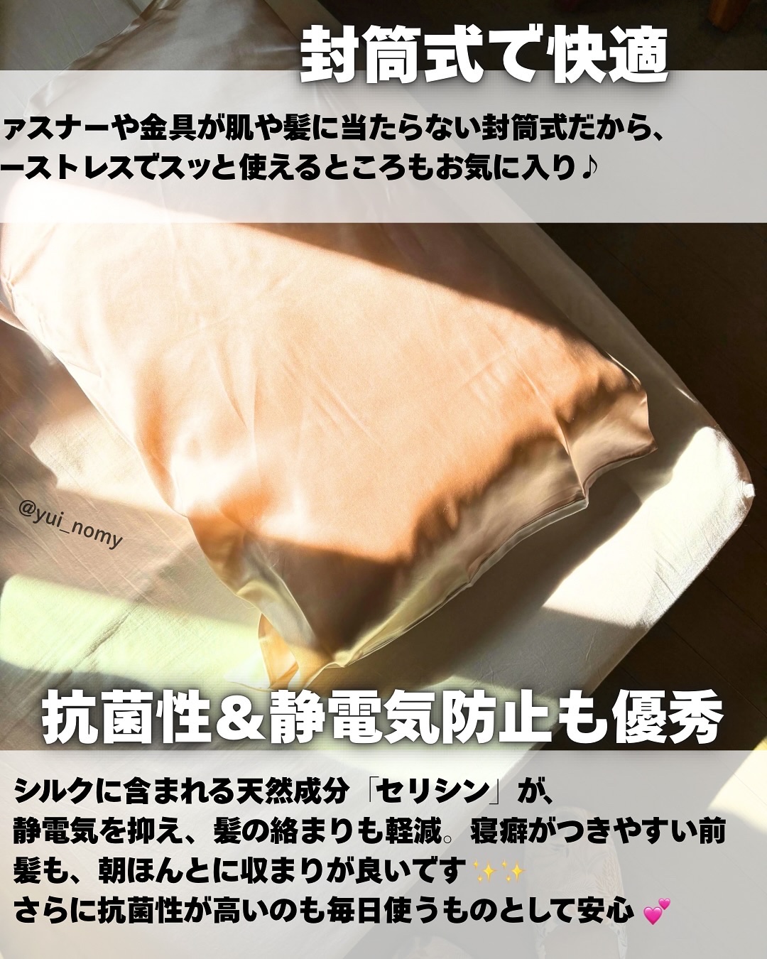 【Utukky】▼シルクまくらカバー・・枕カバーってそんなに違うのかな?って、正直思ってた私。シルクってとにかく“摩擦が少ない”のがすごい!髪が引っかからないから、朝の広がりが落ち着きやすいし寝ぐせもつきにくい気がしたよ!私は毎朝、髪が爆発す...