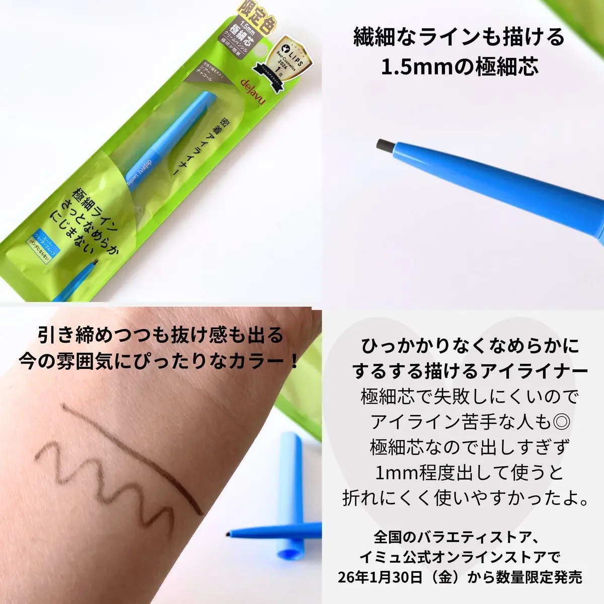 - LIPSベストコスメ2025 殿堂入りLIPSベストコスメ2025 上半期こだわりアワード アイライナー部門もちの良さ賞1位LIPSベストコスメ2024 ペンシルアイライナー部門1位LIPSベストコスメ2024 下半期こだわりアワード アイライナー部門発色賞1位LIPSベストコスメ2023 ペンシルアイライナー部門1位LIPSベストコスメ2023 下半期こだわりアワード アイライナー部門発色賞1位LIPSベストコスメ2023 上半期新作賞 ペンシルアイライナー部門1位LIPSベストコスメ2023 上半期こだわりアワード アイライナー部門使い心地賞1位LIPSベストコスメ2023 上半期こだわりアワード アイライナー部門発色賞3位