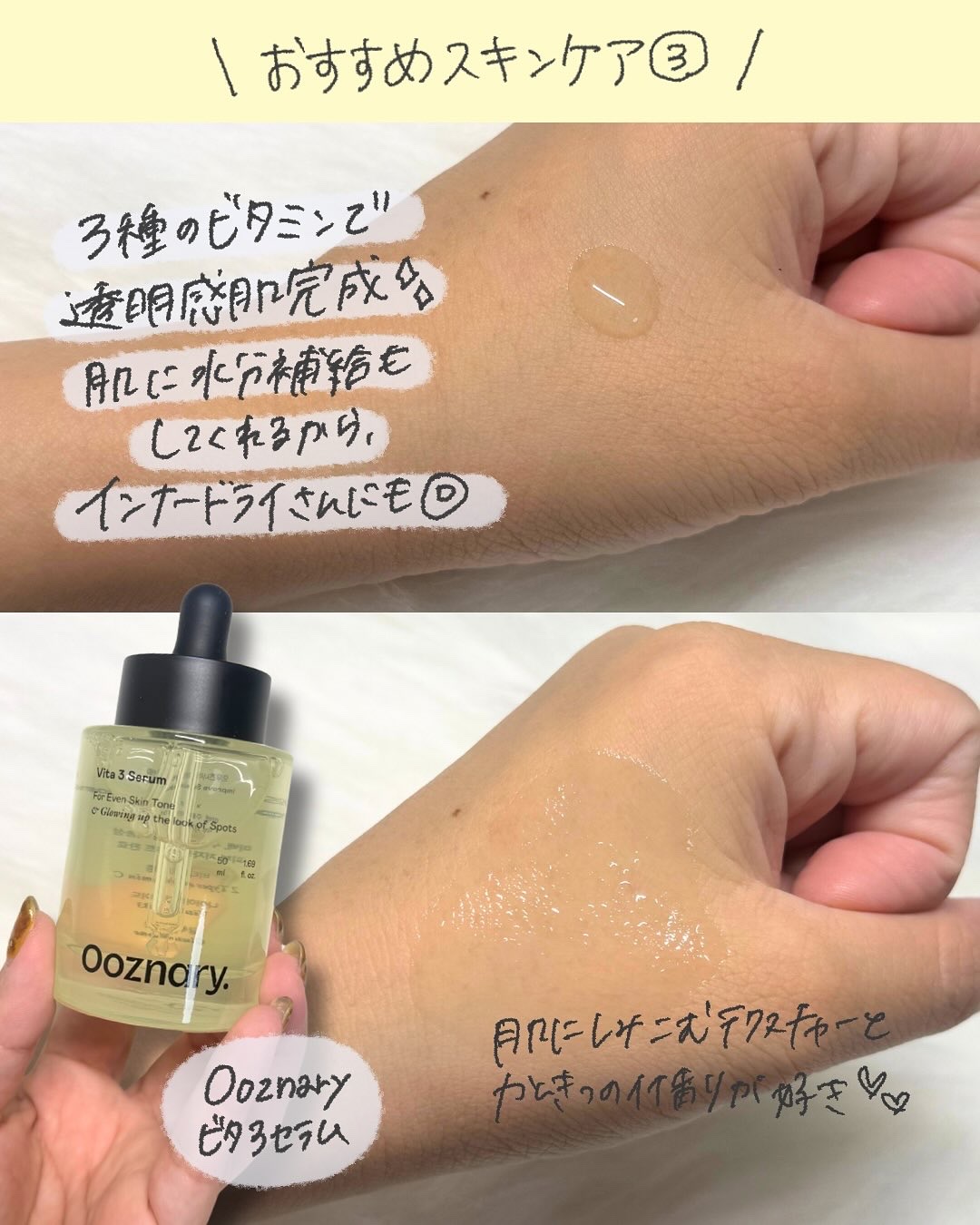 | 少しとろみがあるけど肌に出すとすーっと垂落ちてくるくらいのゆるめのテクスチャーで、のびが良い! | 詳細を見る | ||