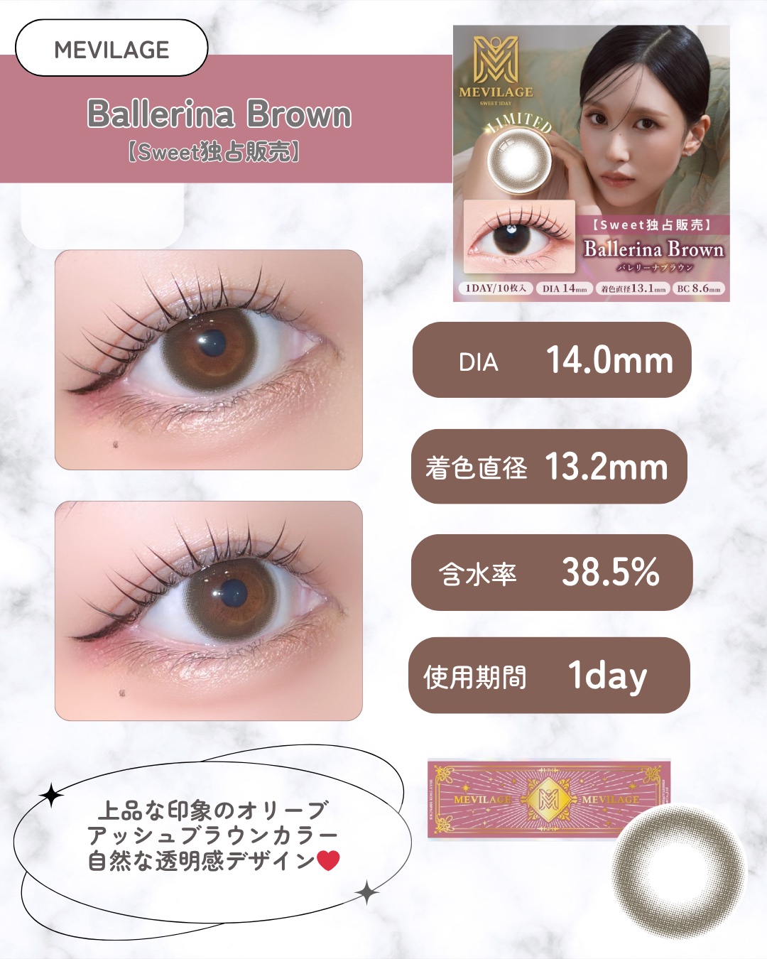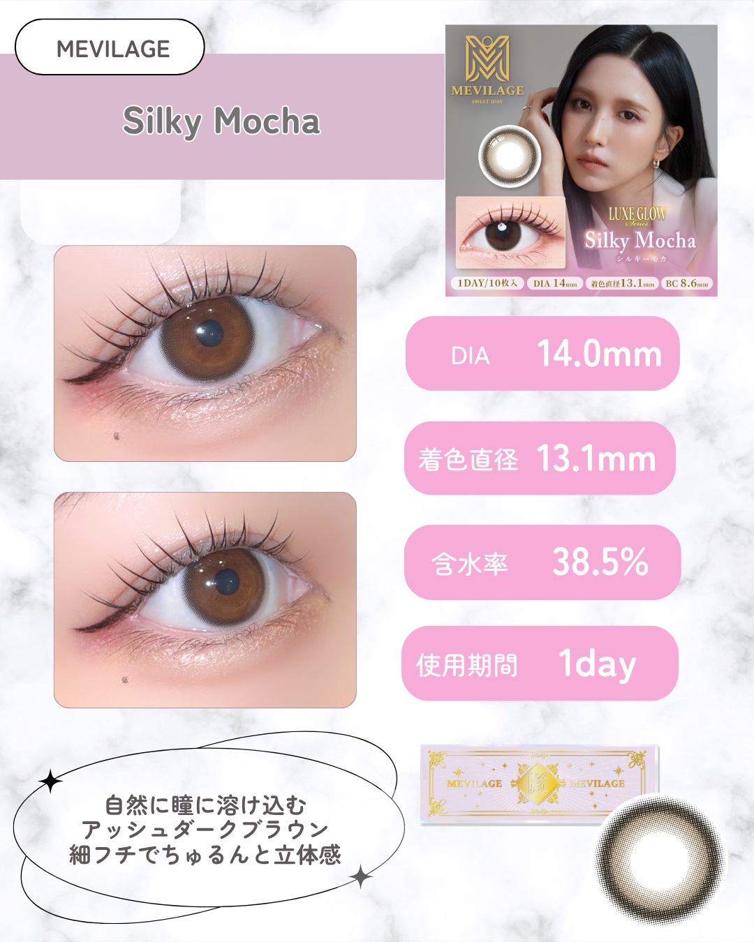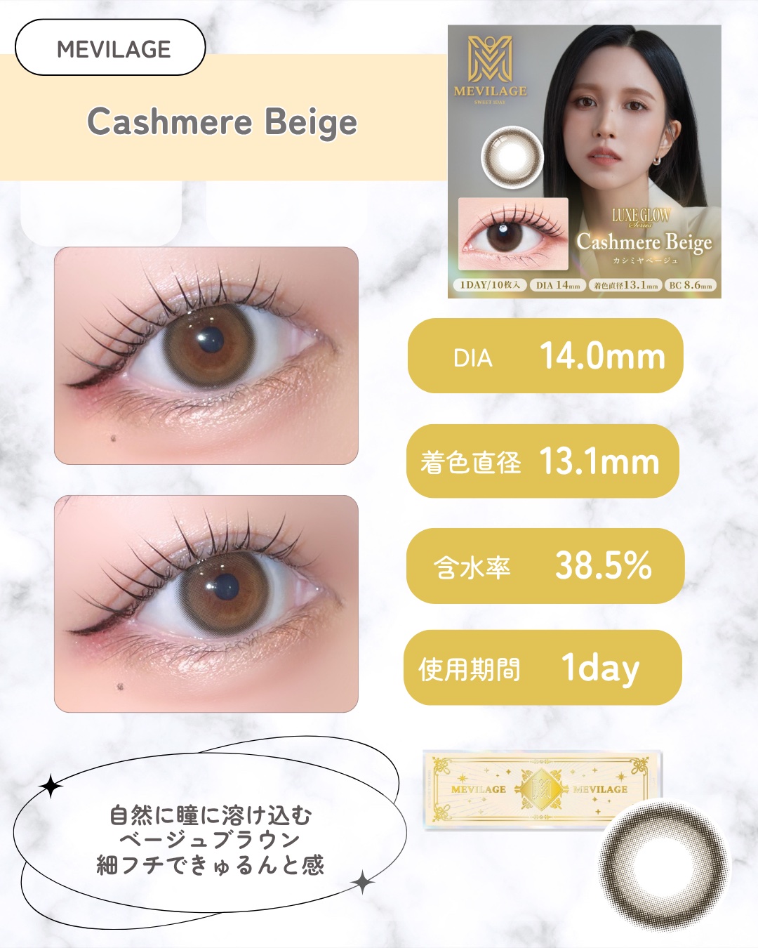 〖TWICEミナブランドミューズ!〗\"その瞳に女神が宿る"ナチュラルカラコン!/❤︎MEVILAGE-メビラージュ-✓DIA14mm✓BC8.6mm✓着色直径13.1mm✓含水率3...