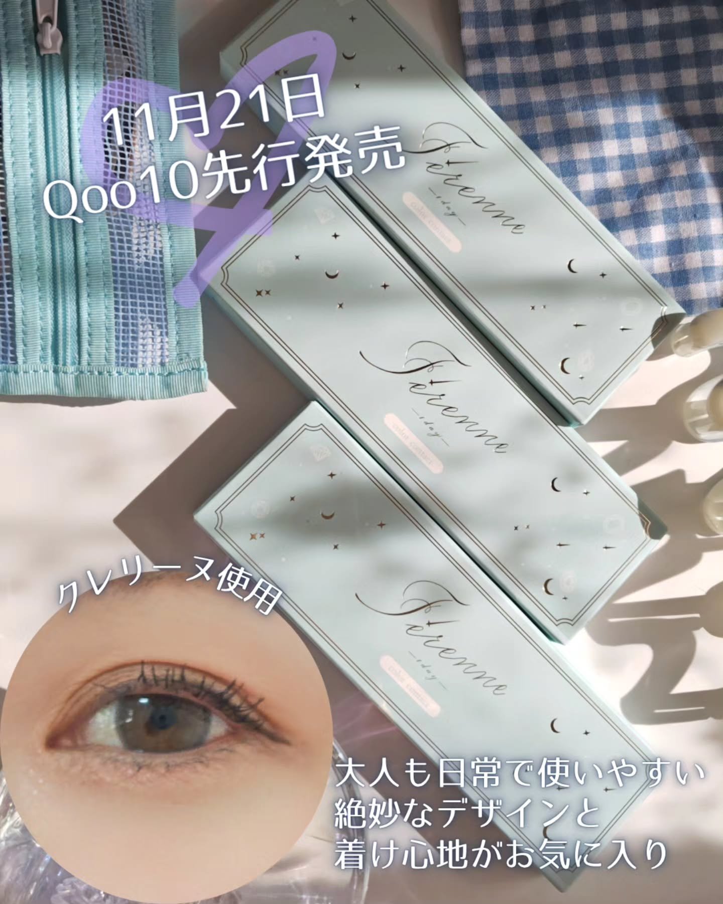 - ■Eccrine Brown(エクリンブラウン) DIA:14.2mm/着色外径:13.3mm ちゅるんとした魅力的な瞳を演出。 ブラウンとライトベージュが瞳に艶感を出す水光レンズ。 ■Charme Gray(シャルムグレー) DIA:14.2mm/着色外径:12.7mm 大人可愛いダークグレーがポイント。 細めのくっきりフチが瞳に馴染み高貴さを演出。 ■Tierphine Brown(ティアフィーヌブラウン) DIA:14.2mm/着色外径:12.3mm 裸眼に溶け込むようになじみ、やわらかい印象を与えてくれる。 透明感溢れる可憐な瞳を演出 ■Ferrish Pink(フェリッシュピンク) DIA:14.2mm/着色外径:13.3mm 瞳に立体感と透明感をプラスしてくれるグラデーションレンズ。 瞳にじゅわっと溶け込むようになじみ、絶妙なこなれ感を演出してくれる。 コンタクトレンズの不適正使用による眼障害の危険性等などがあります。 ●コンタクトレンズは高度管理医療機器です。不十分な洗浄・消毒など不適切なケアや、長時間・交換期間を超えた装用により、アレルギー性結膜炎、角膜感染症、角膜潰瘍等の重篤な眼障害が発生する危険性があります ●ご使用前に取扱説明書を確認してください 使用上の留意事項 ●眼科医院等を受診してからお求めください ●眼に異常を感じたら直ちにレンズ使用を中止し、お近くの眼科等で診察を受けてください ●医師の指示にしたがってご使用ください ●コンタクトレンズを装用する場合、自覚症状がなくても、眼科医院等での定期検査を受けてください ●レンズに不具合がある場合は使用しないでください