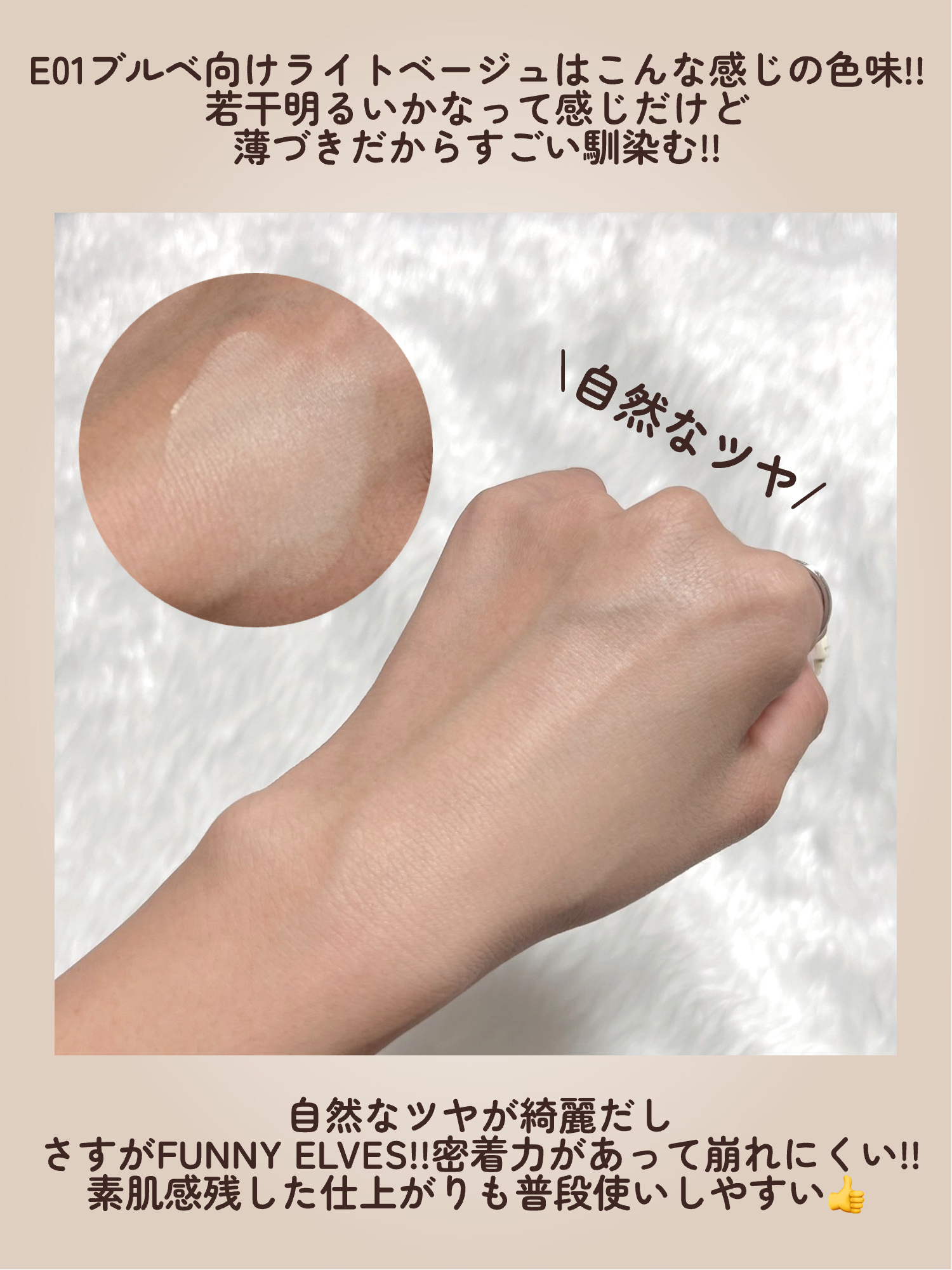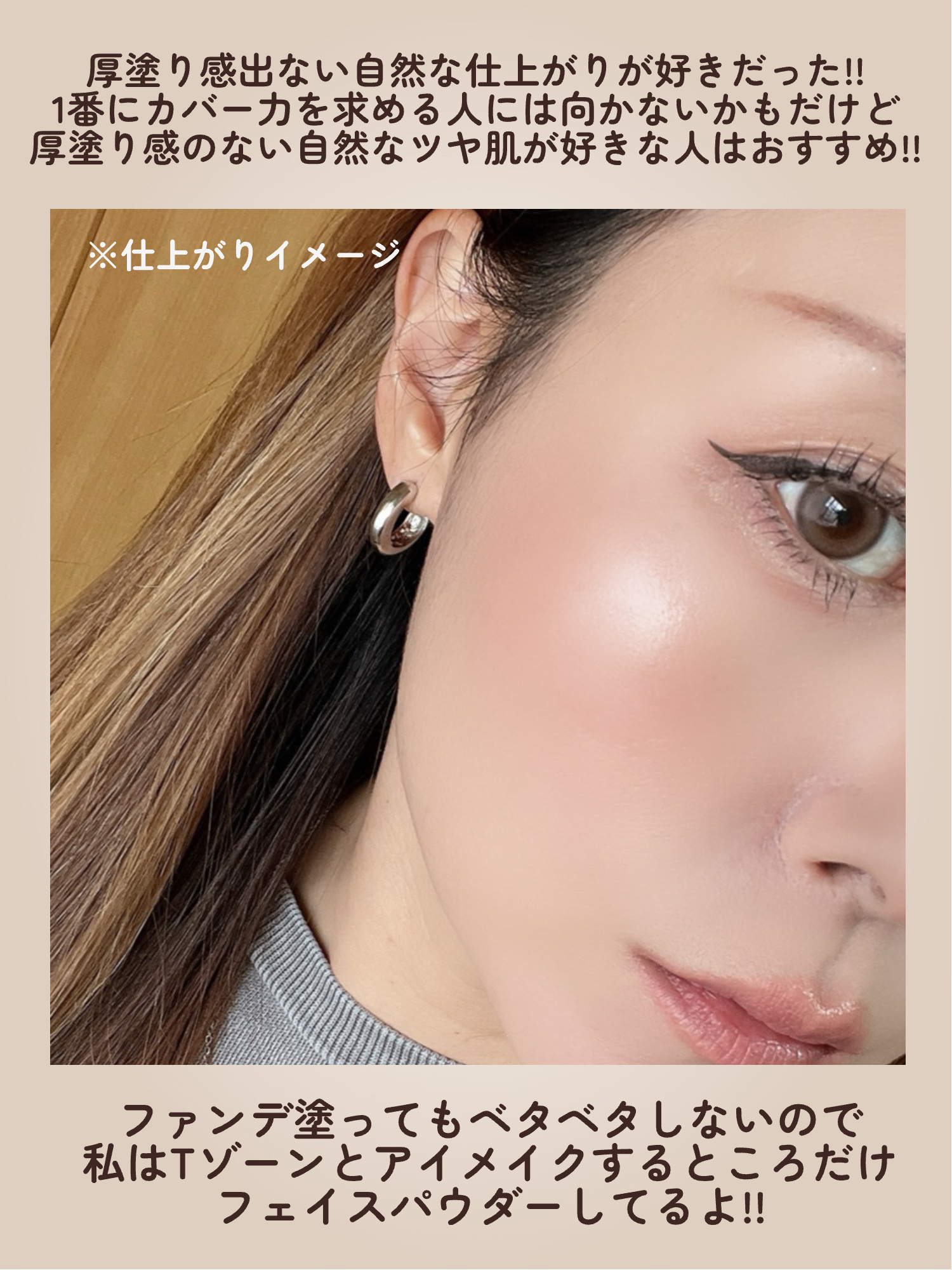 仕上がり綺麗。崩れにくい。乾燥崩れもしにくかった。 嫌なところ1個もない ツヤが綺麗な白玉肌が長時間続くところが好き!! 1日使ってても「早くメイク落とした〜い」となりにくいので肌への負担も感じにくい