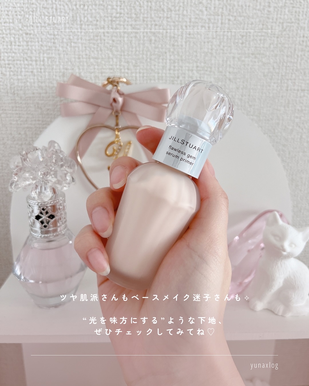 🎀ⵗコスメレビュー🧸͗͗🌷〻JILLSTUART様よりいただきましたˊ˗☑︎フローレスジェムセラムプライマー毛穴や凹凸をふんわりカバーしてダイヤ&パールパウダーが光をまとったようなツヤ感で真珠みたいにきらめく肌印象に🎠🪞少量...