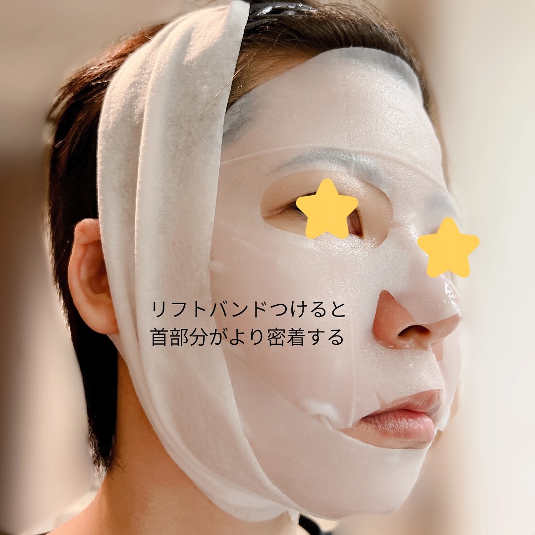 次世代成分NMN*¹配合🌿.∘ 年齢肌の悩みにアプローチする上下異なるフルフェイス3Dシートマスク✨ とろりとしたミルクのようなテクスチャー︎の美容液がたっぷり🤍 ベタつきなくしっとりとした使い心地で首までシートがあるので同時に首ケアできるのも良いです👍🏻 ̖́-︎ 付属で白いリフトバンドがついていて一緒に使うとさらにリフト感を感じられます︎🤍 結ぶ必要なくピタッと合わせるだけでくっつくので手軽🫶🏻🩷
