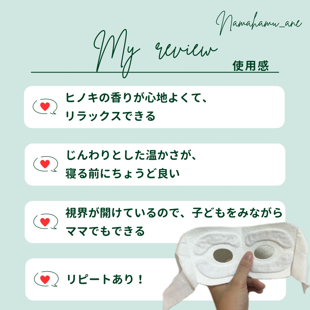 | ウェルネスランキング第22位 | 厚みが出て目の周りが包み込まれてる感じがUPしてる ひのきの香りに癒される〜、目の疲れも緩和されます いつのまにか寝てしまうので眠れない時にもおすすめ! | 詳細を見る | |