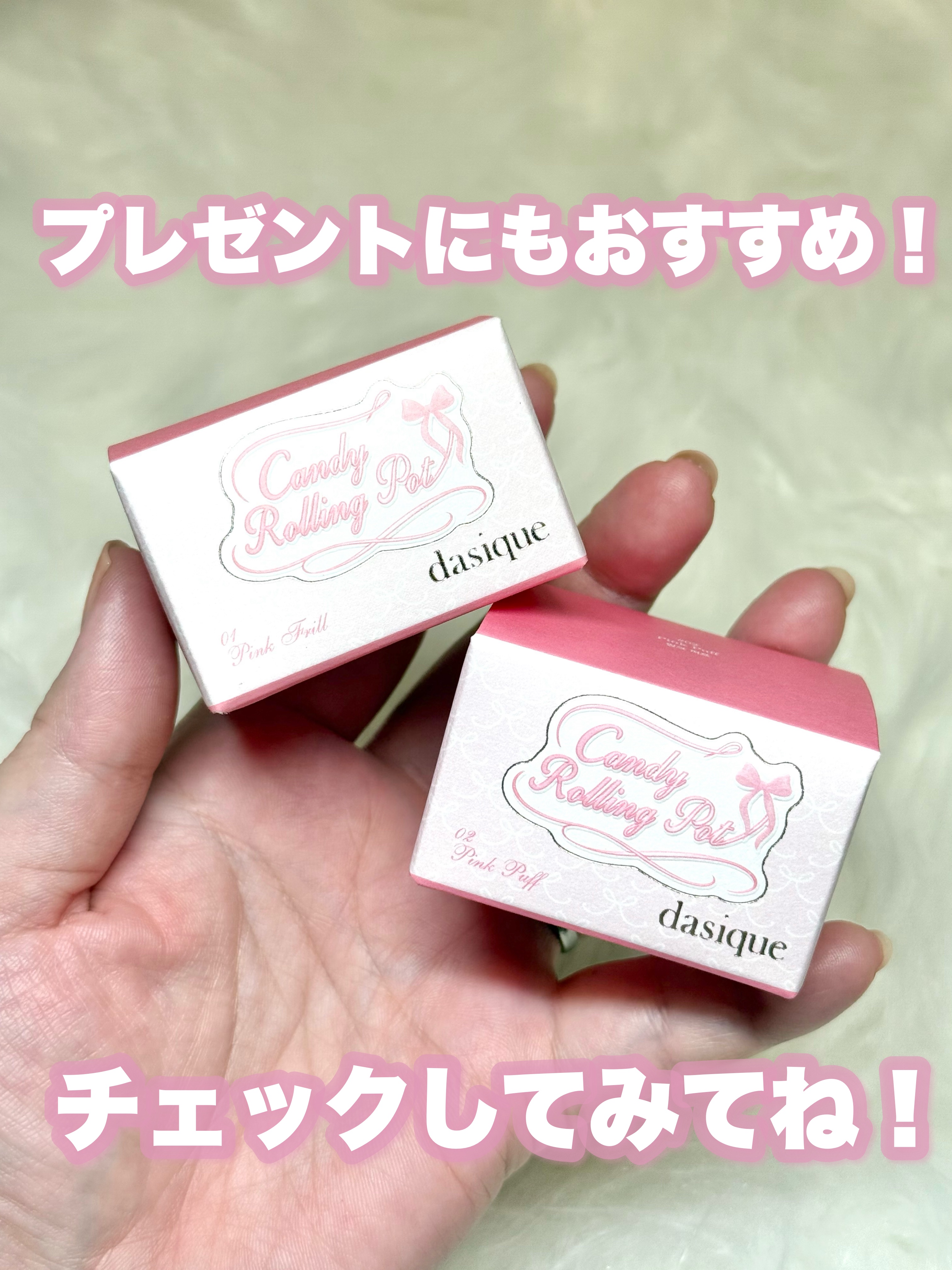 🩰🎀Dasique.⋆𝜗𝜚キャンディローリングポット01ピンクフリル02ピンクパフ@dasique_jpバレエコアコレクションからキャンディみたいに可愛い新作が登場🍭保湿力高くてほんのりピンクに色づいてくれる⋆⸜♡⸝⋆白✕ピンクの...