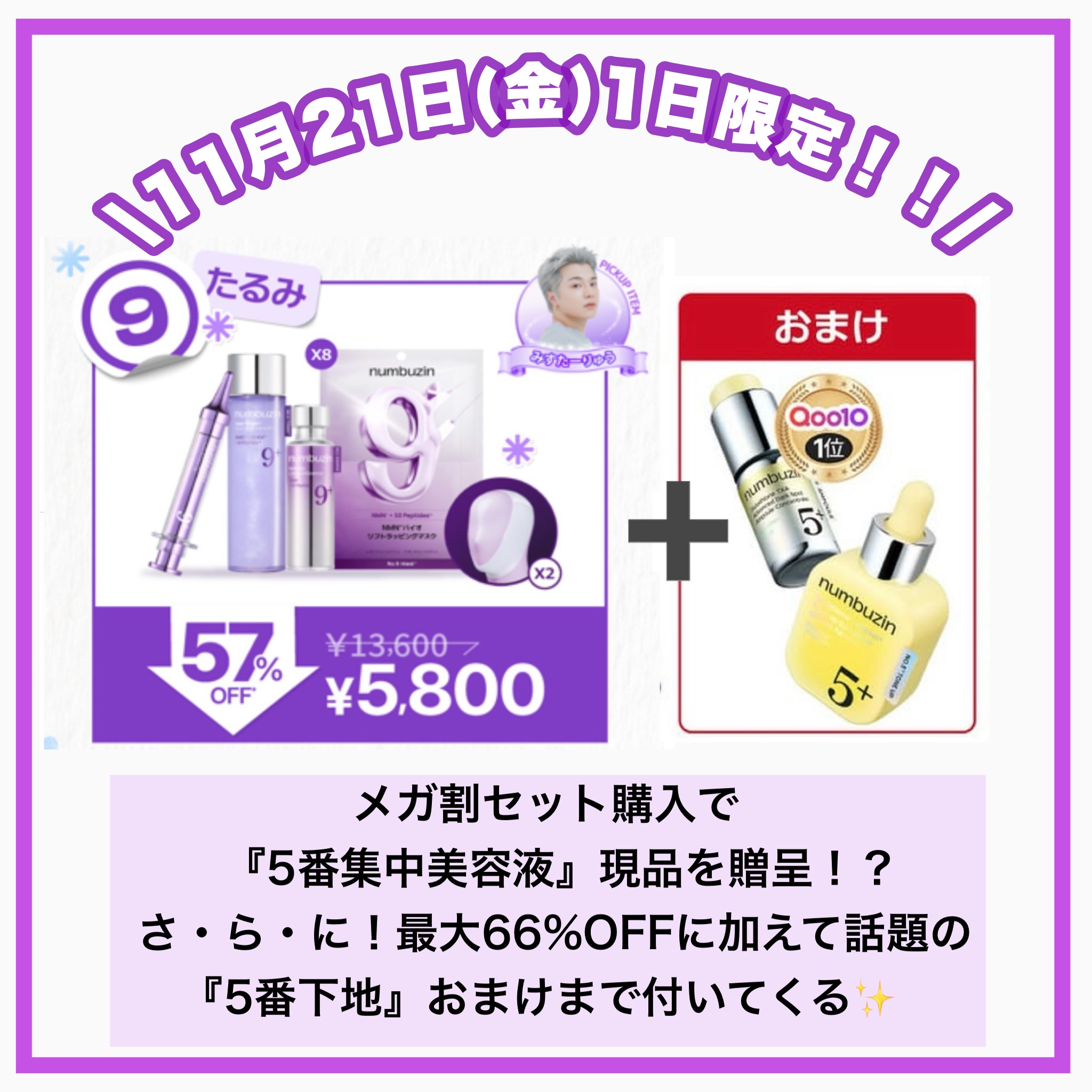.ナンバーズインメガ割初日が最強すぎたˎˊ˗11/21(金)1日限定!メガ割セット購入で、『5番集中美容液』現品を贈呈!さらに!最大66%OFFに加えて、話題の『5番下地』おまけまでナンバーズインの中でおすすめな9番ラインもご紹介𓍯.究極のハ...