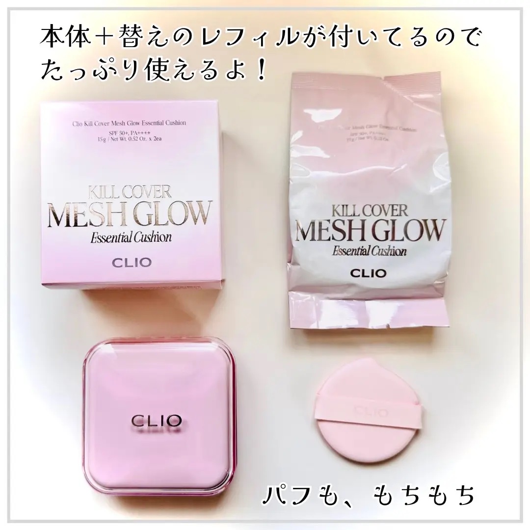 ブルベカラー比較🎀【𝐂𝐋𝐈𝐎】♡𝐊𝐢𝐥𝐥𝐂𝐨𝐯𝐞𝐫𝐌𝐞𝐬𝐡𝐆𝐥𝐨𝐰𝐄𝐬𝐬𝐞𝐧𝐭𝐢𝐚𝐥𝐂𝐮𝐬𝐡𝐢𝐨𝐧𝟏𝟗𝐂𝐋𝐢𝐠𝐡𝐭/𝟐𝟏𝐂𝐋𝐢𝐧𝐠𝐞𝐫𝐢𝐞♡.*・。。・*.♡超薄膜もっちりクリーミーテクスチャーで内側から輝くツヤ感を演出するメッシュクッション...