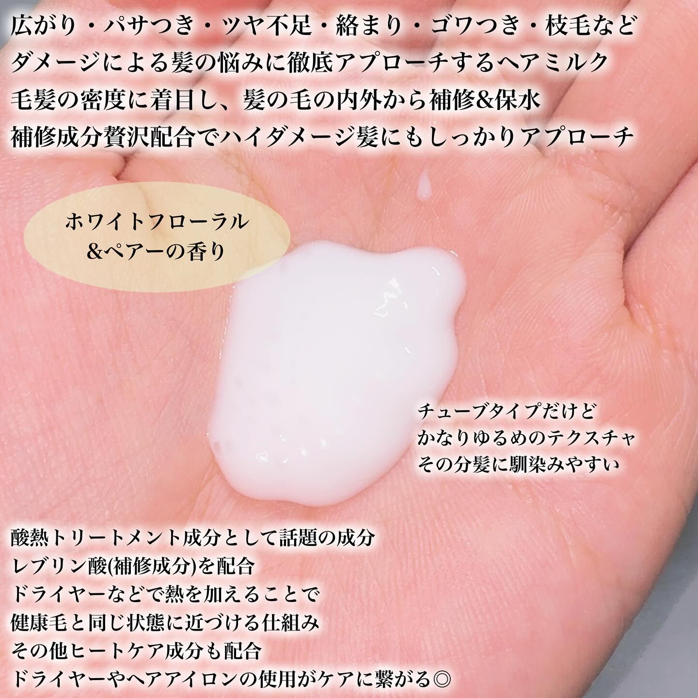 | みずみずしいテクスチャーで 髪に揉み込んだ手はサラッと🖐🏻◎まさに髪の化粧水 軽くてまとまる髪に♡ | 詳細を見る | ||